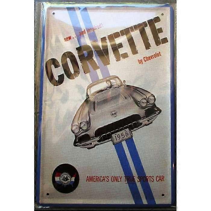 Chevrolet Corvette True Sport Car Advertising Sign - Blue Stripe - Metal