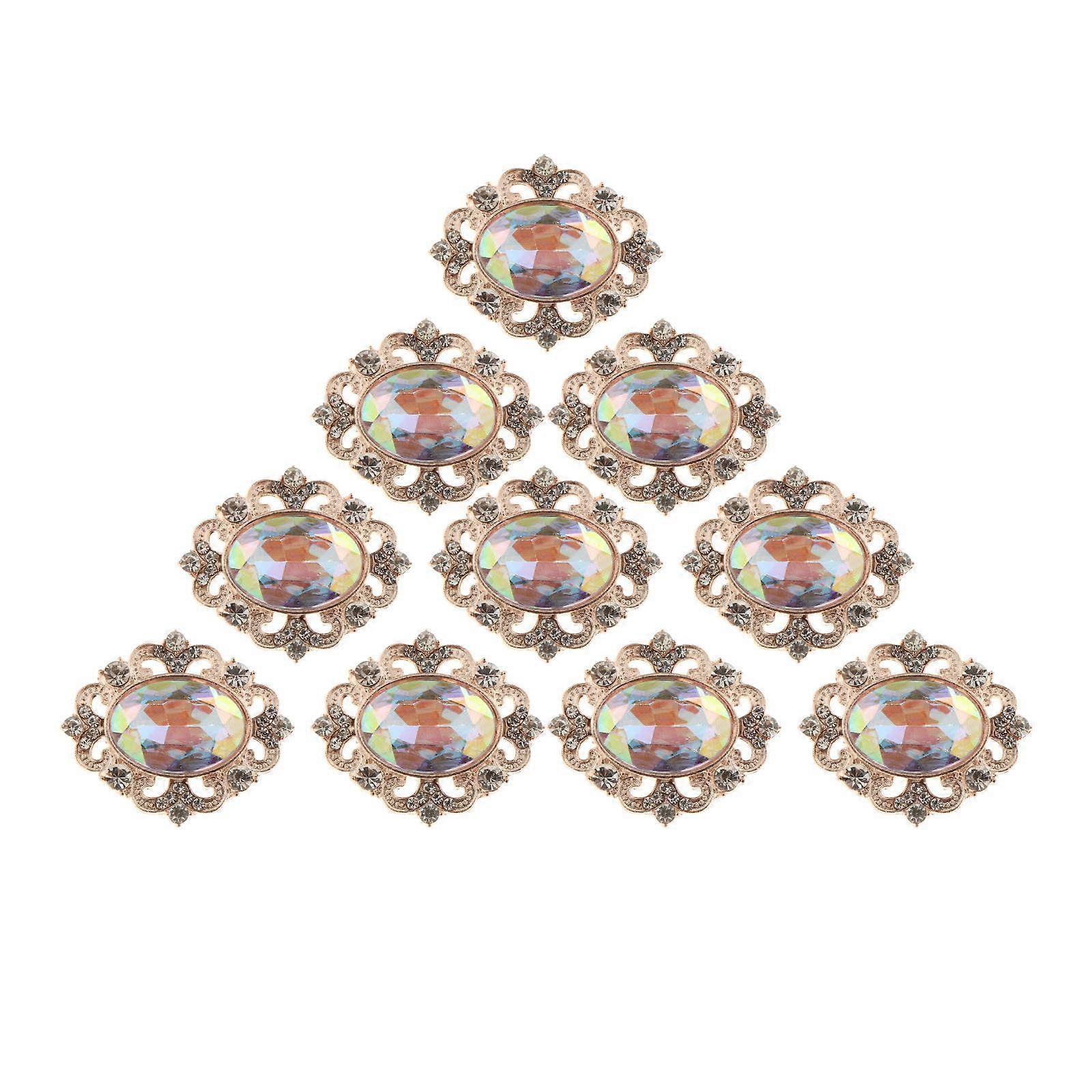 10Pcs Bling Crystal Rhinestone Buttons 1.2"x1" Alloy Decor Embellishments for