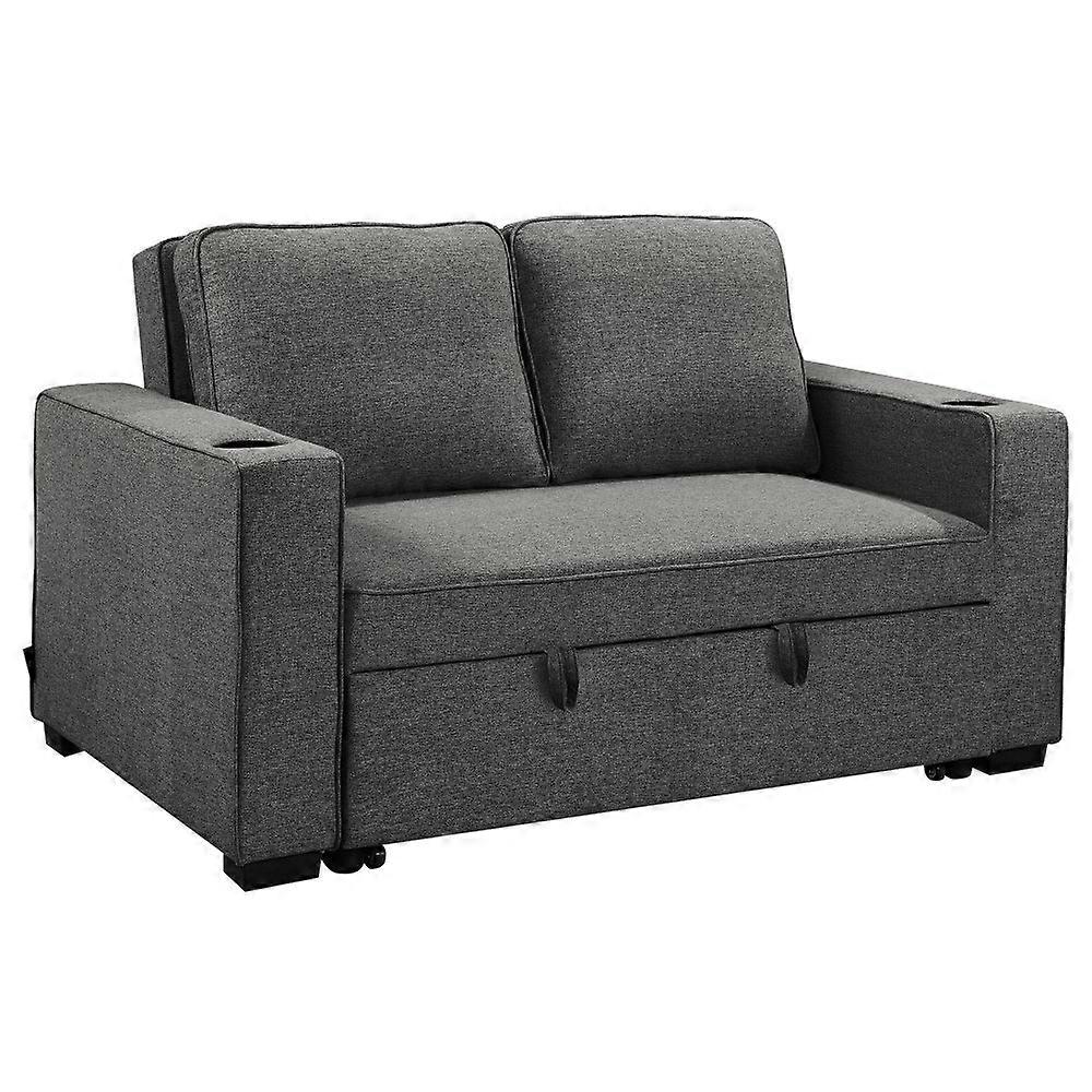 Sarantino Hoffman Linen Dark Grey Convertible Sofa Bed Couch Lounge With Cushions Cupholders Scandinavian Style Frame And Legs Sofa Beds