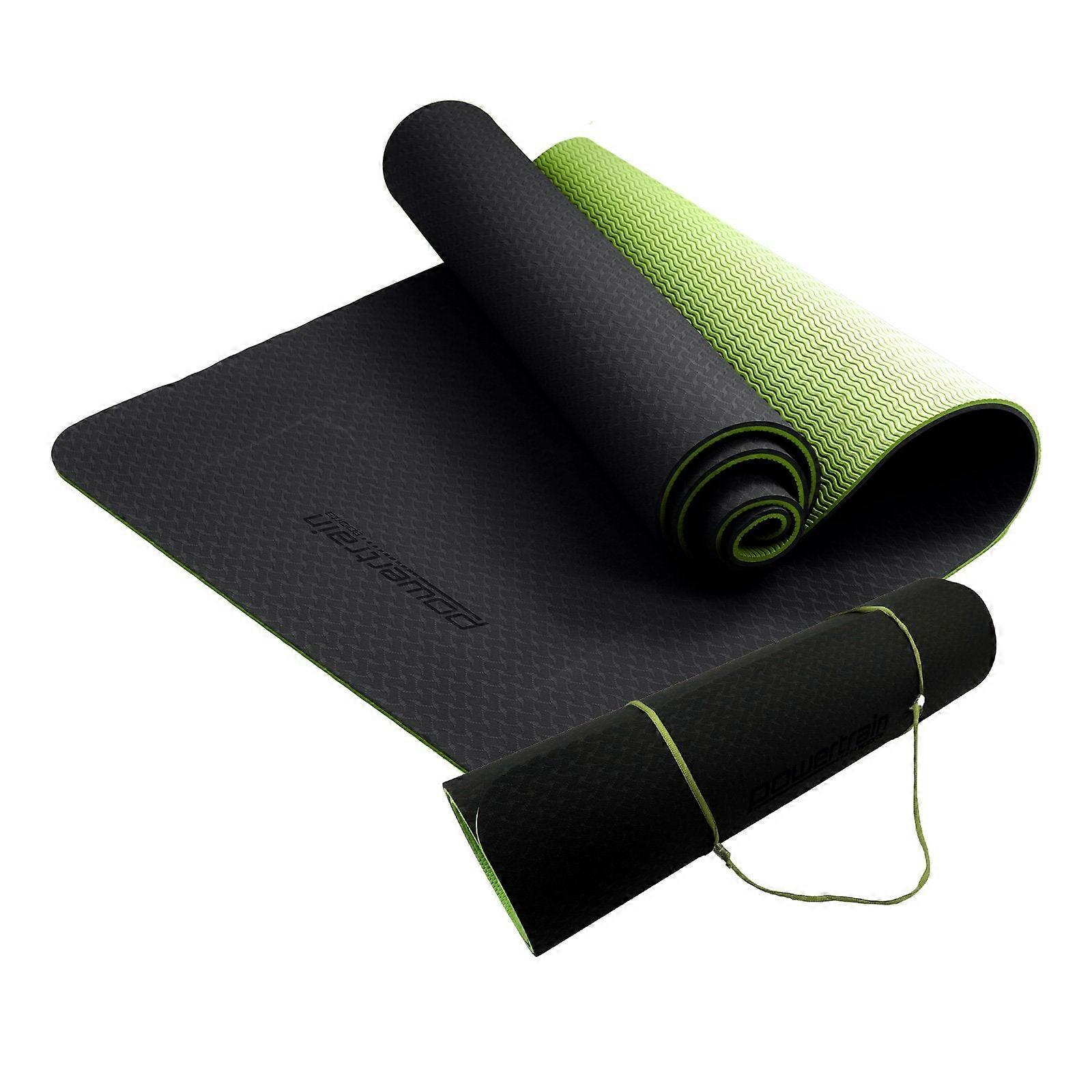 Powertrain Eco Friendly Tpe Pilates Exercise Yoga Mat 8Mm Black Green Mats & Non Slip Towels