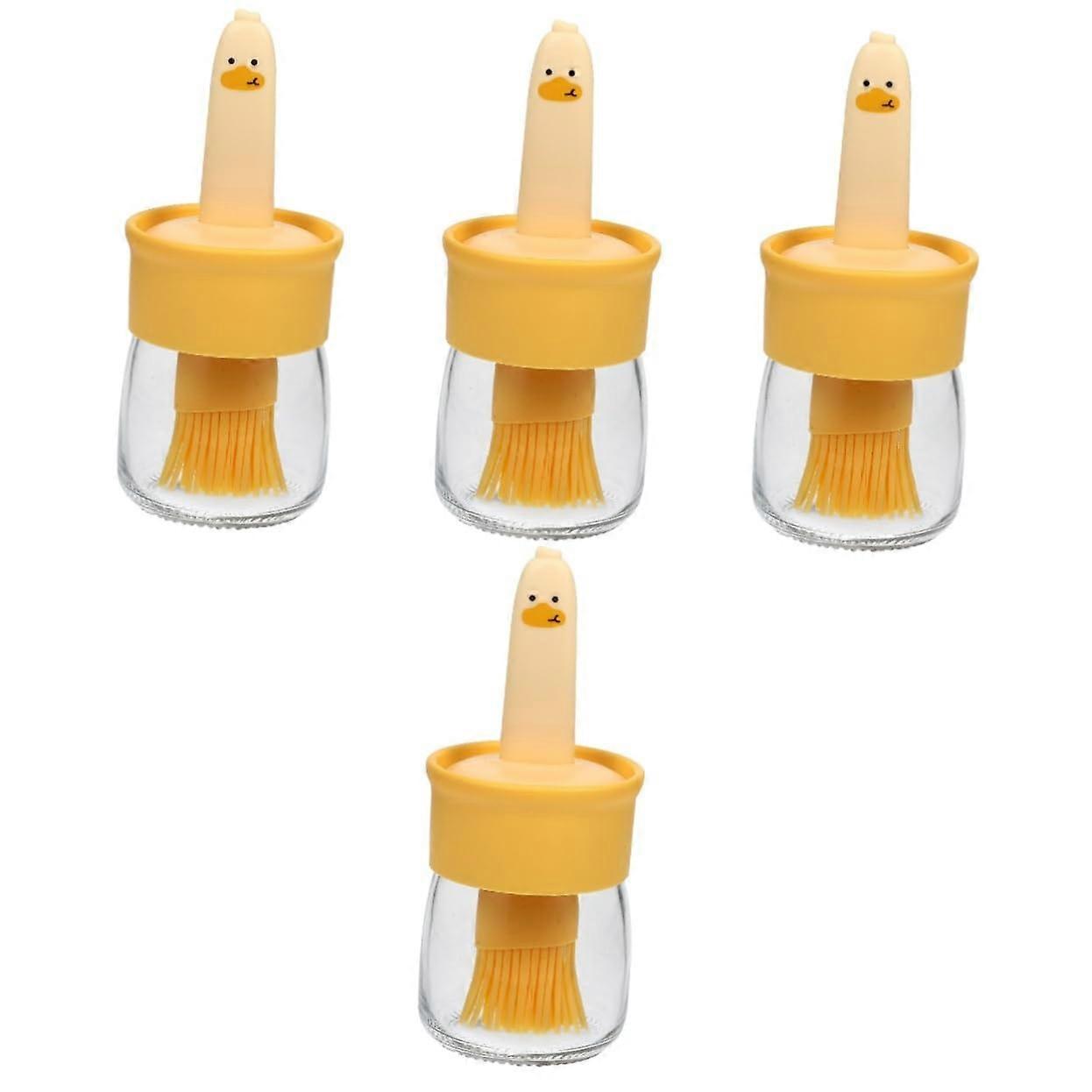 4 Pack Silicone Oil Brush Bottles for Cooking, BBQ Sauce, Baking and Grilling, Yellow Glass