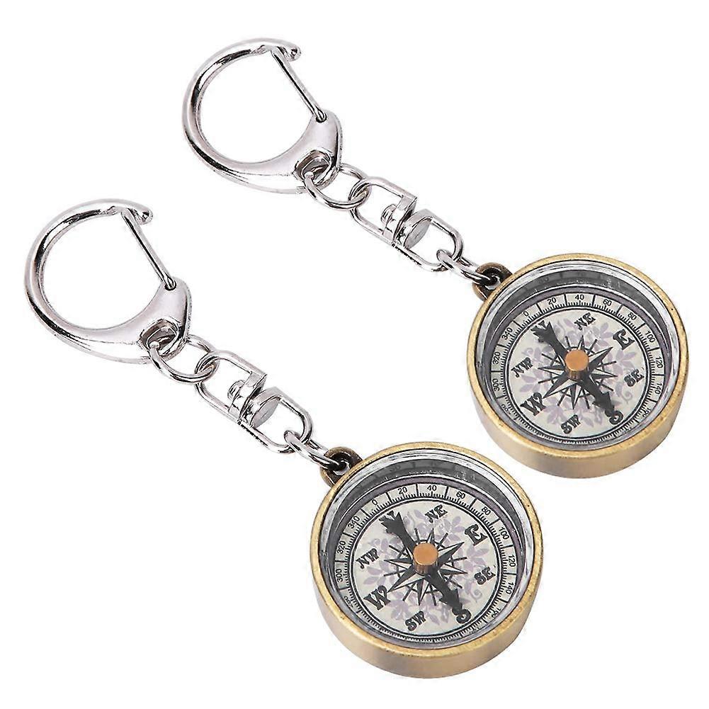 Pocket Compass Two-Piece Mini Keychain Compass For Mountaineering, Hiking And Camping, Vintage Outdoor Style