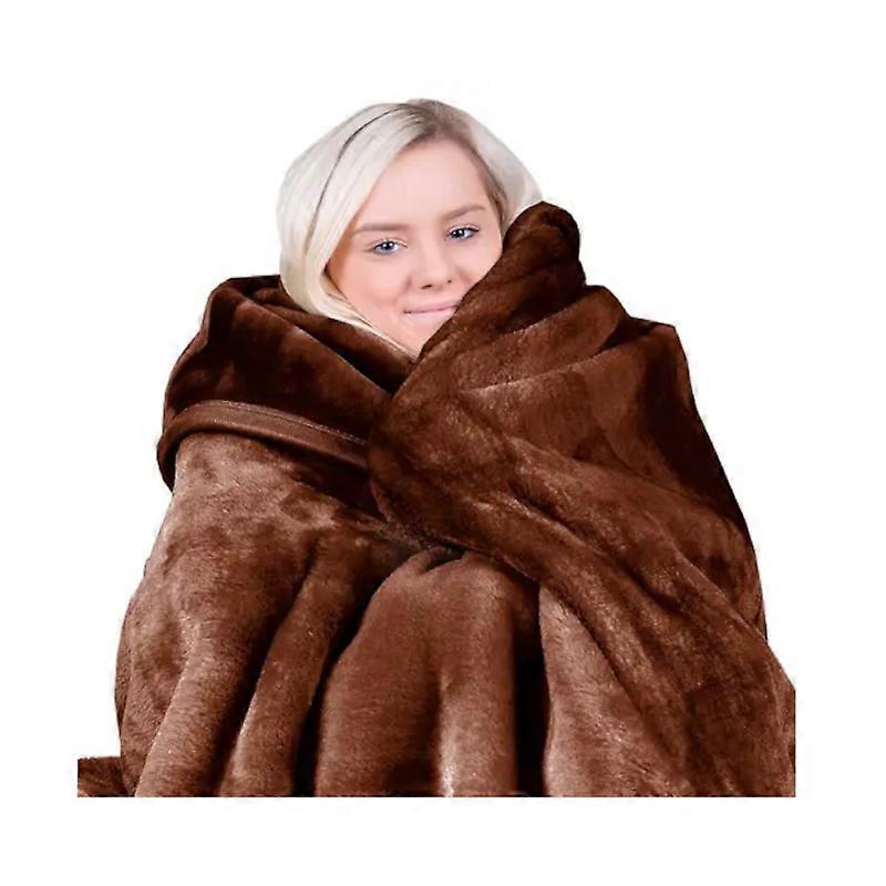 Laura Hill Faux Mink Blanket 800Gsm Heavy Double Sided Chocolate Blankets