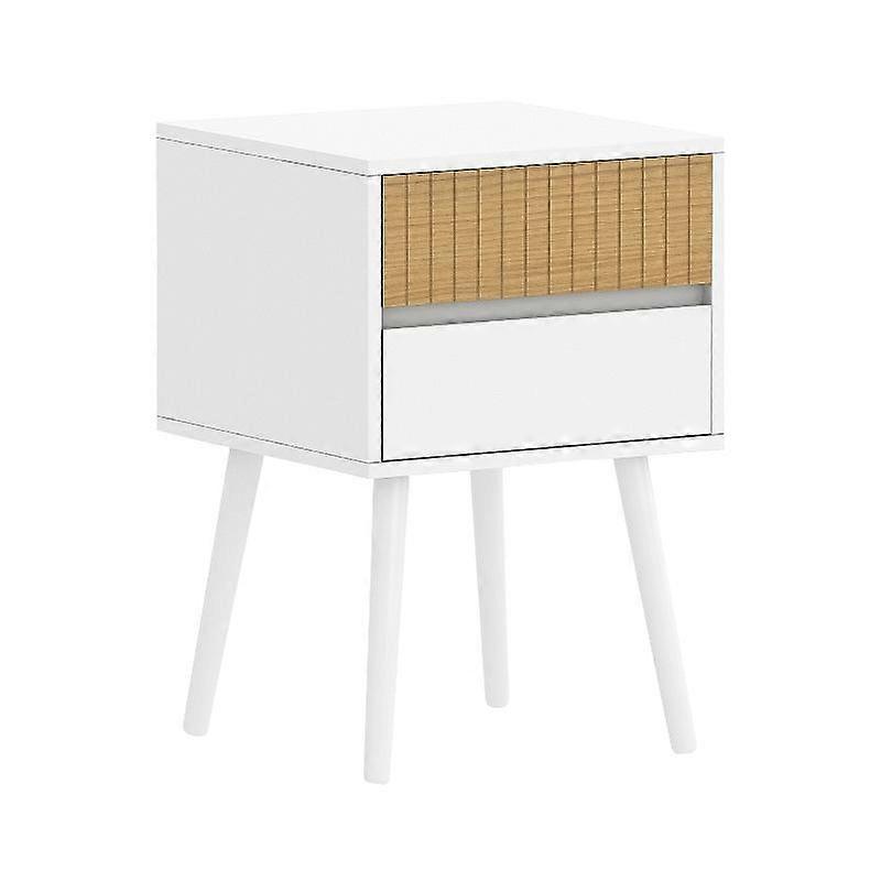 Sarantino Clio Bedside Table Night Stand White/Natural Bedside Tables