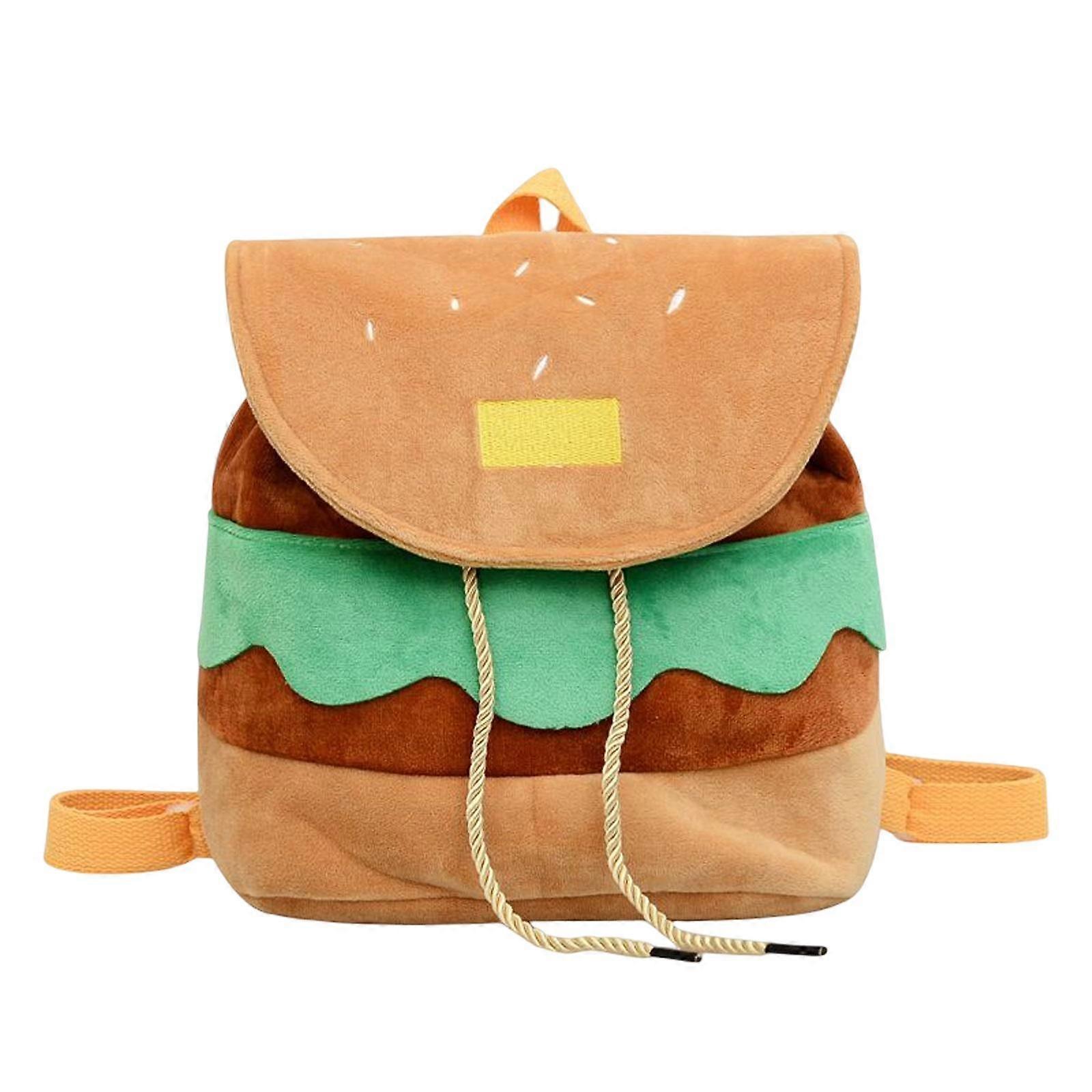 Burger Plush Backpack Drawstring Cartoon Small Gift for Kids Ladies Girls