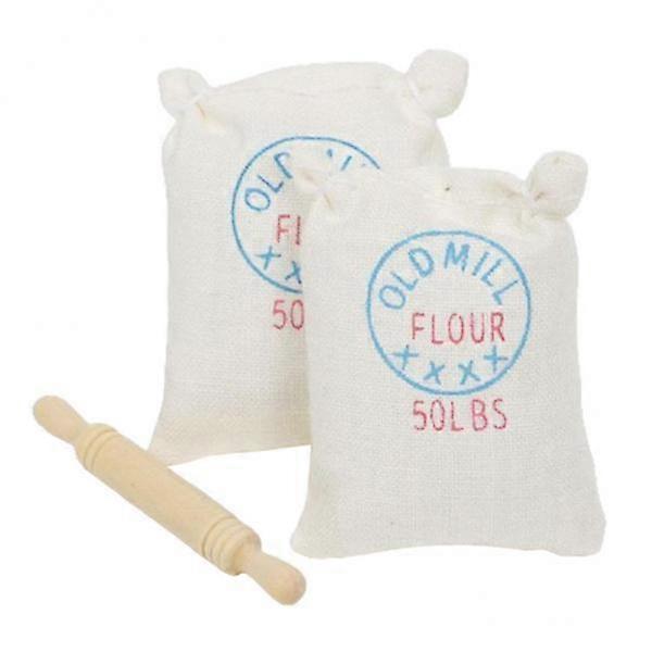 10X Miniature Furniture Simulation Two Bags Flour Sack Rolling Pin Kitchen