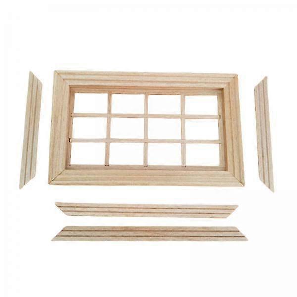2x 1/12 Scale Doll House Furniture Wooden Window Ornament with 12 Panes