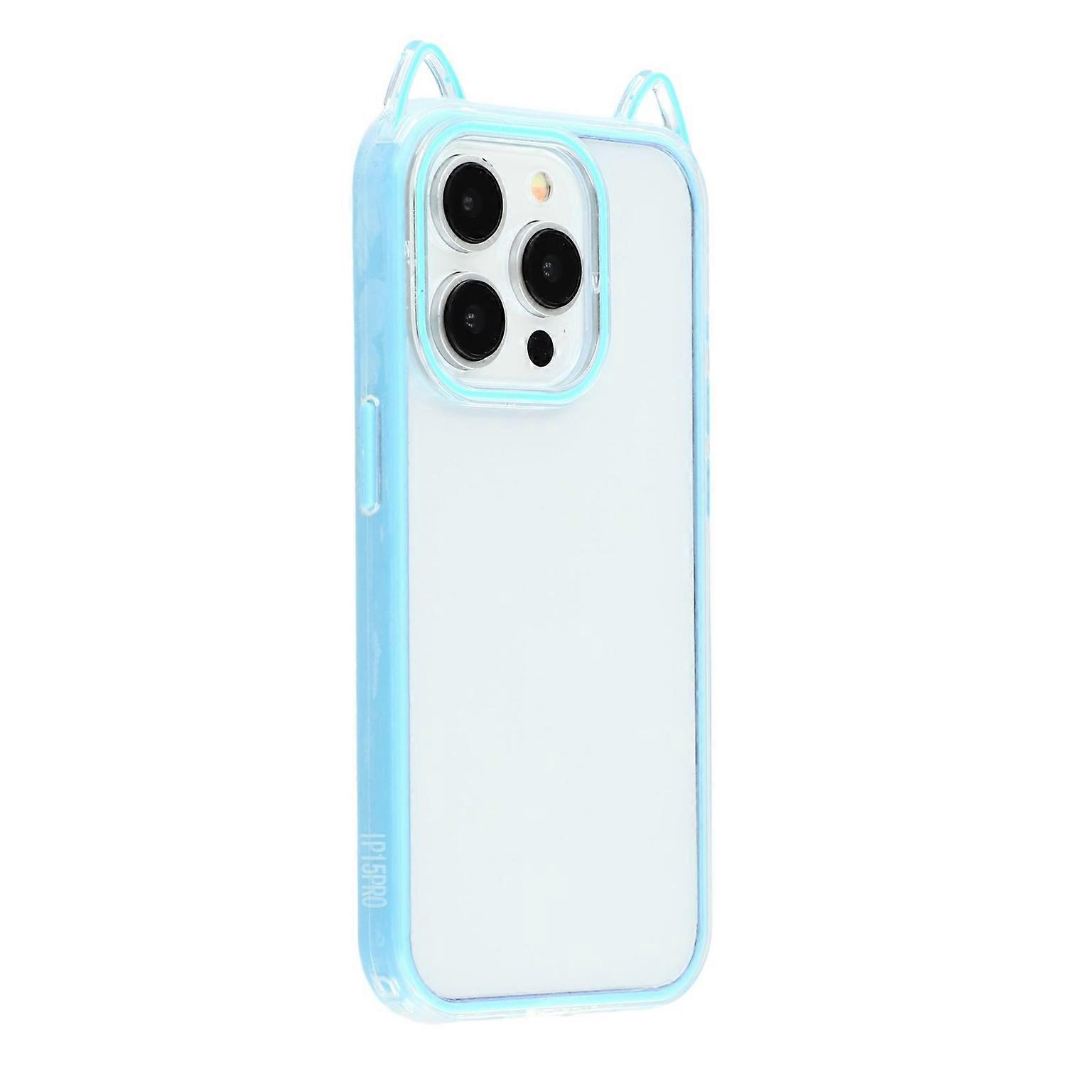 For iPhone 14 Pro Max Case Cat Ear Design TPU + Acrylic Clear Phone Back Cover - Baby Blue