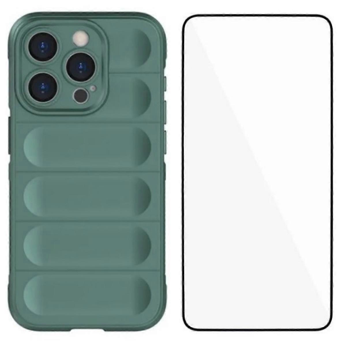 For iPhone 15 Pro Max TPU Case WANLONFENG HD Series Anti Slip Phone Cover with Tempered Glass - Army