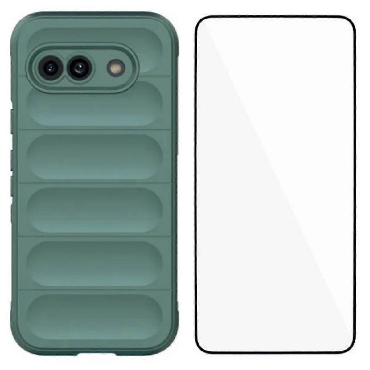 For Google Pixel 9a TPU Case WANLONFENG HD Series Anti Slip Phone Cover with Tempered Glass - Army G