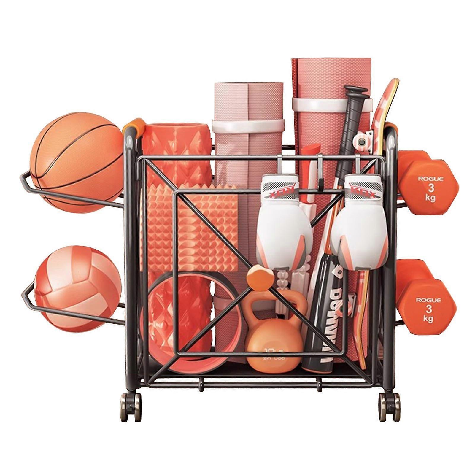 Rolling Sports Ball Basket Black Indoor Outdoor Storage System Garage Organizer Large Capacity For Yoga Mats Dumbbells