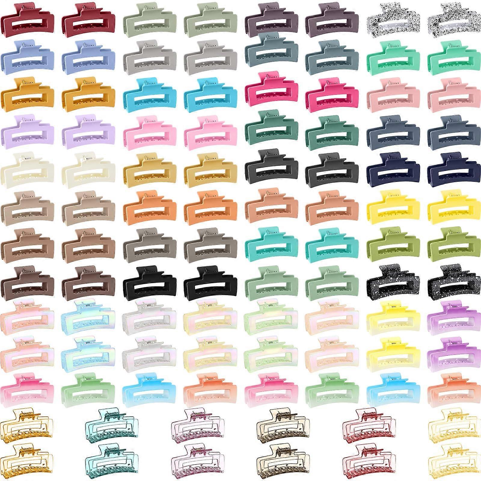 Hair Clips 100 Pcs Bulk Claw Clips, Large Nonslip Rectangle Hair Clips For Women, 3.4 Inch Multicolor