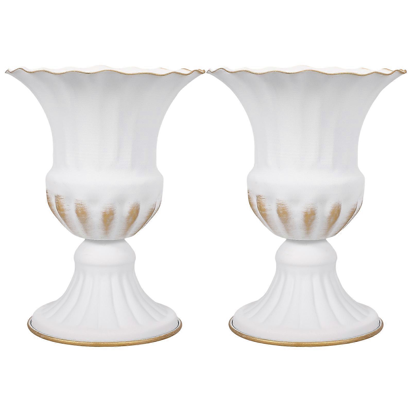 Memorial Vase 2Pcs White Iron Urn Planter with Stable Base for Storage