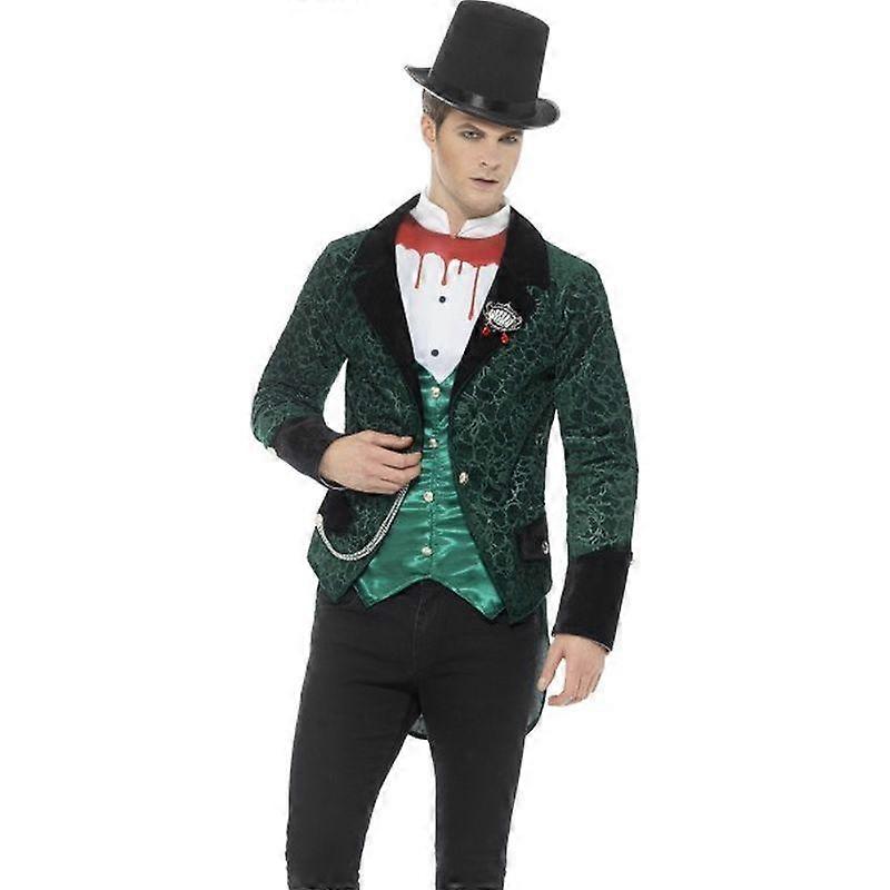 Deluxe Victorian Vampire Costume, Green, With Jacket, Attached Mock Shirt and Brooch Adult - Male Theme: Halloween Adult Fancy Dress - Halloween Fancy Dress Brand: Smiffys Fancy Dress Safety Instructions: Adult Size Fancy Dress Costume. Not For Children. Dyes May Not Be Colourfast. Warning Keep Away From Fire. Washing Instructions: Dry Clean Only Age Group: Adult Main Colour: Green