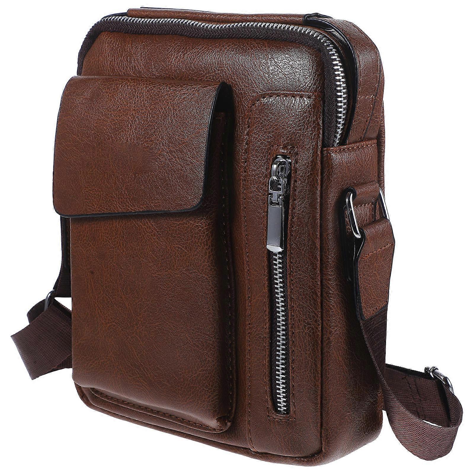 Mens Crossbody Bags Rectangular Shape Classic Style Pu Adjustable Strap Large Size Light Brown 1Pcs