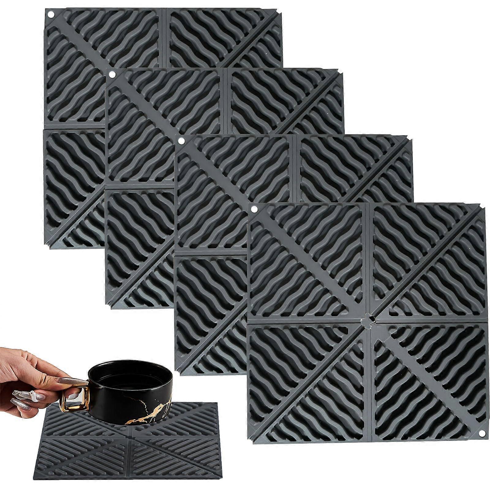 Silicone Pot Holders 2 In 1 Trivet And Pot Holder 6.5In Foldable Hot Pads Non-Slip Coasters For Pots Dark Grey Pack Of 4