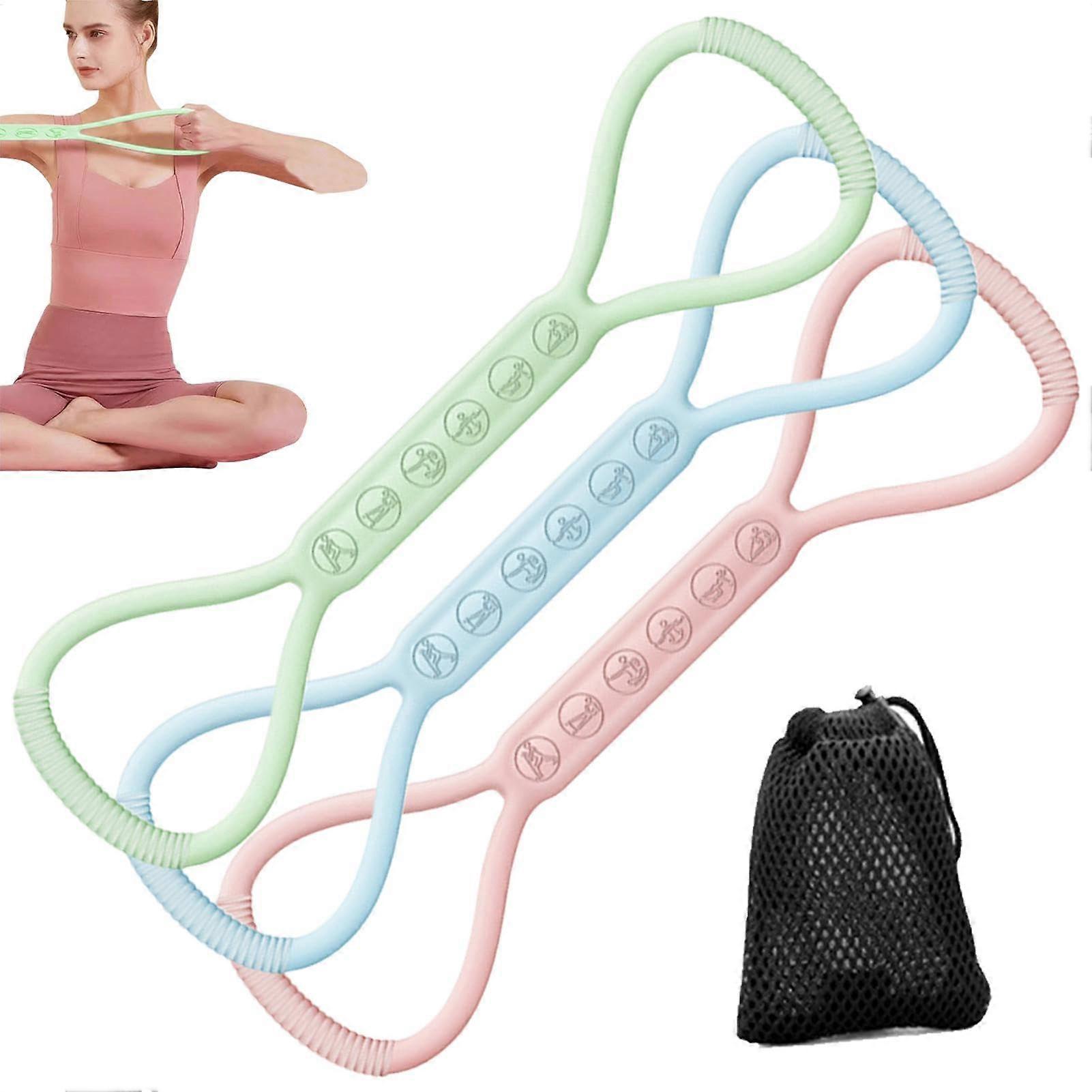 Back Training Belt 8-Formed Resistance Bands 3-Pack Portable Fitness Accessories for Hips Legs Feet
