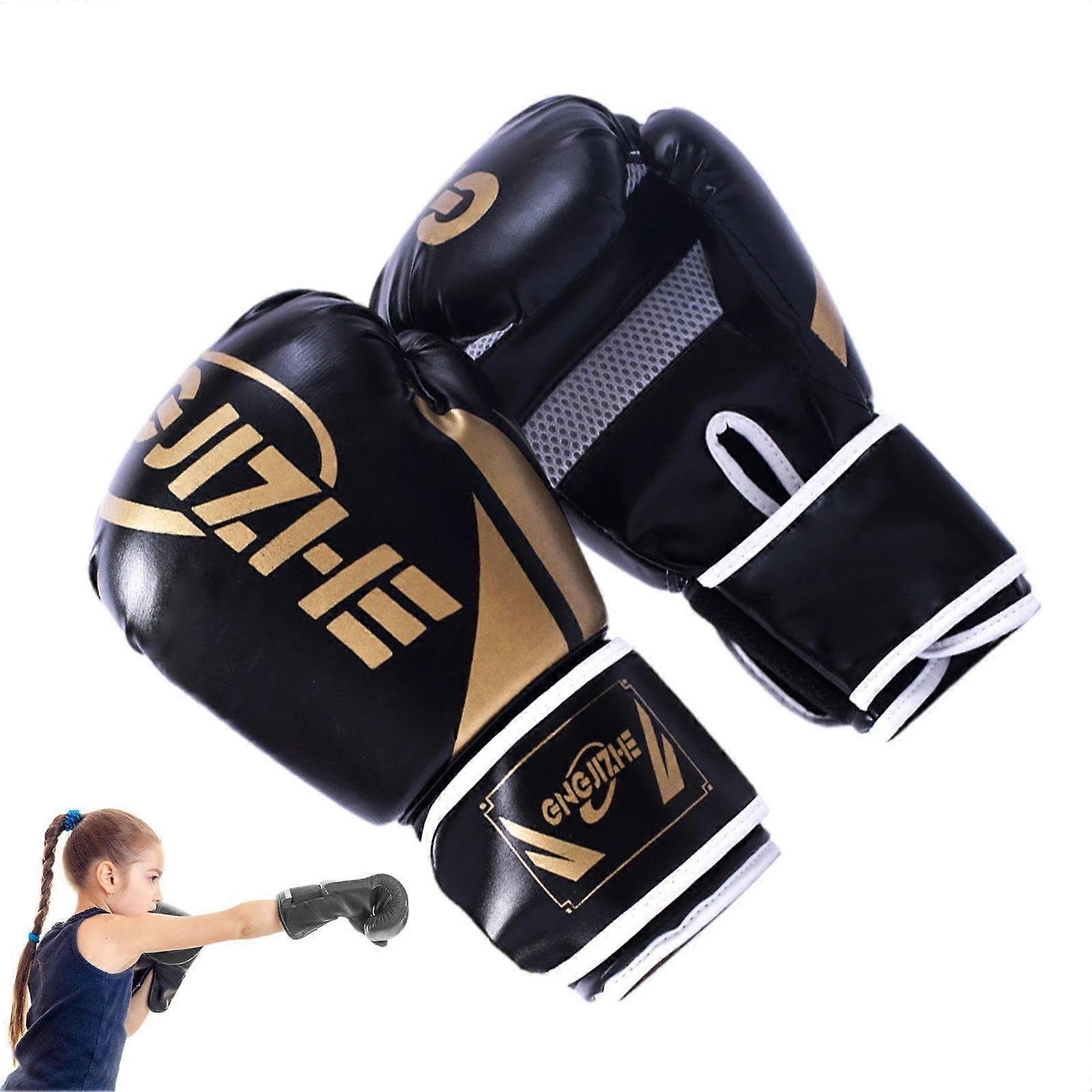 Boxing Gloves for Kids PU Leather Lightweight Training Gloves for Kickboxing Muay Thai Gym Workout Black A
