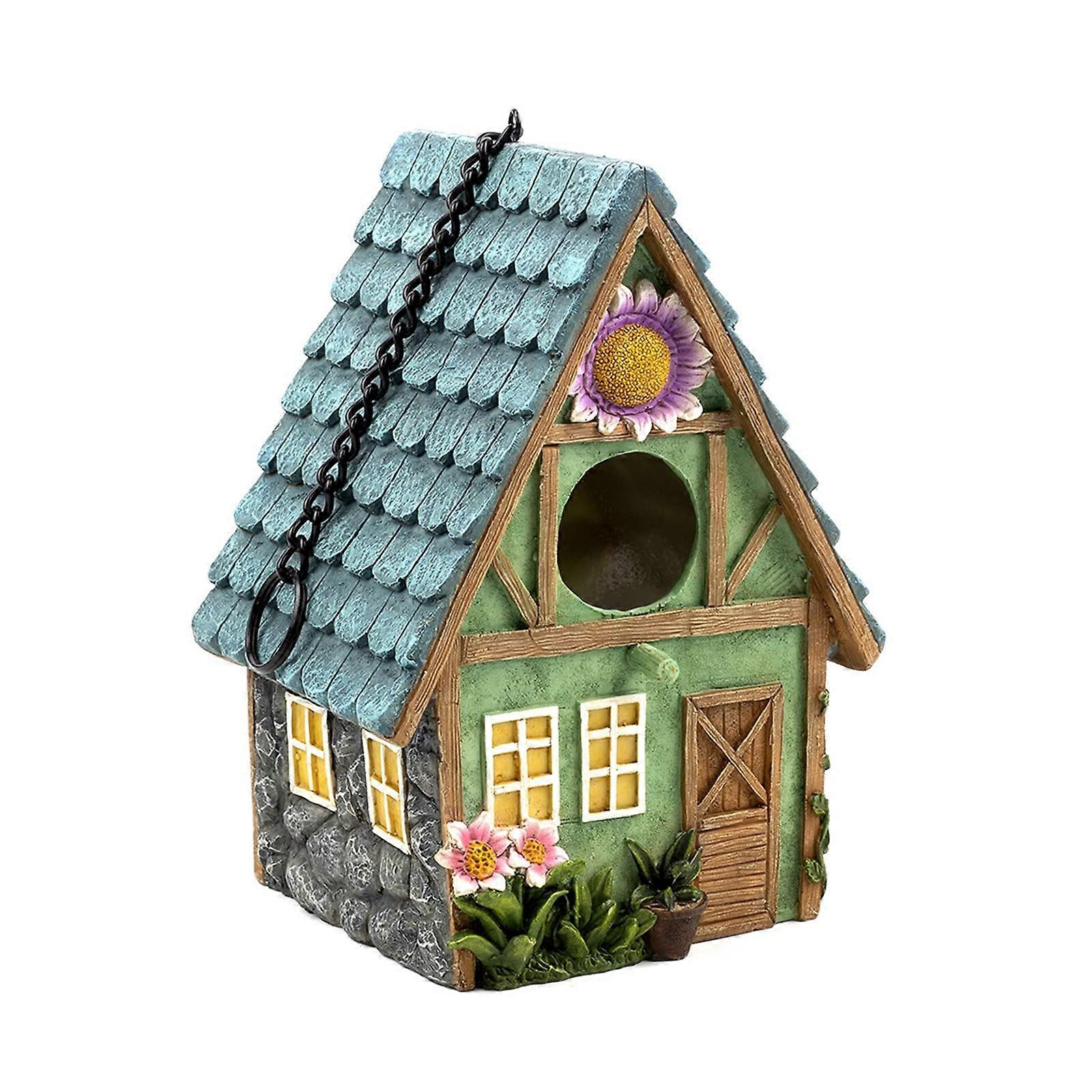 Outdoor Hanging Resin Bird House with Metal Ring Suitable for Garden, Patio and Patio