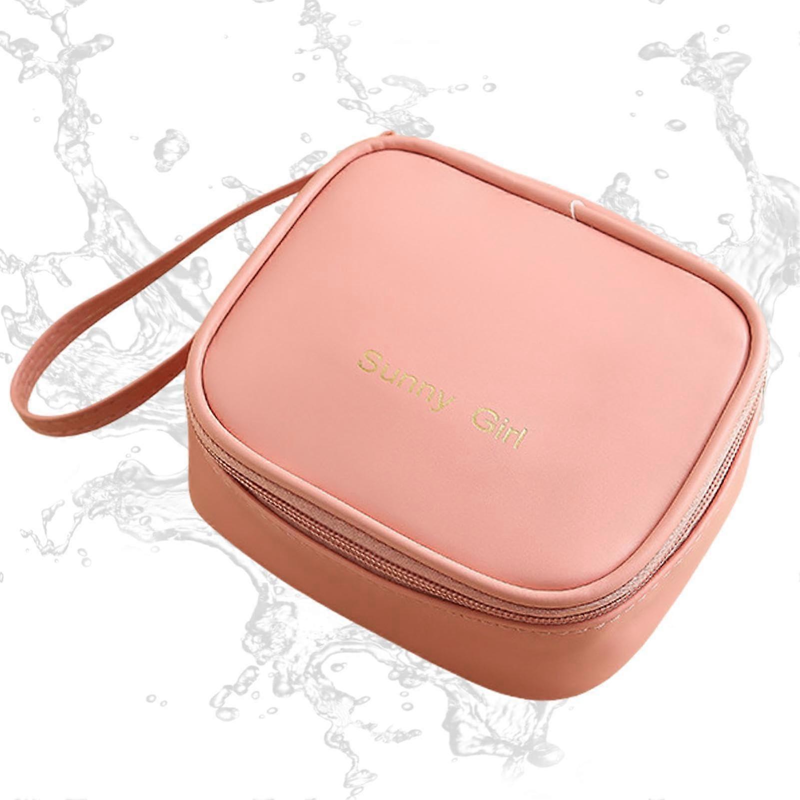 Period Pad Storage Pouch with Zipper, PU Leather Sanitary Napkin and Tampon Bag for Women, Pink