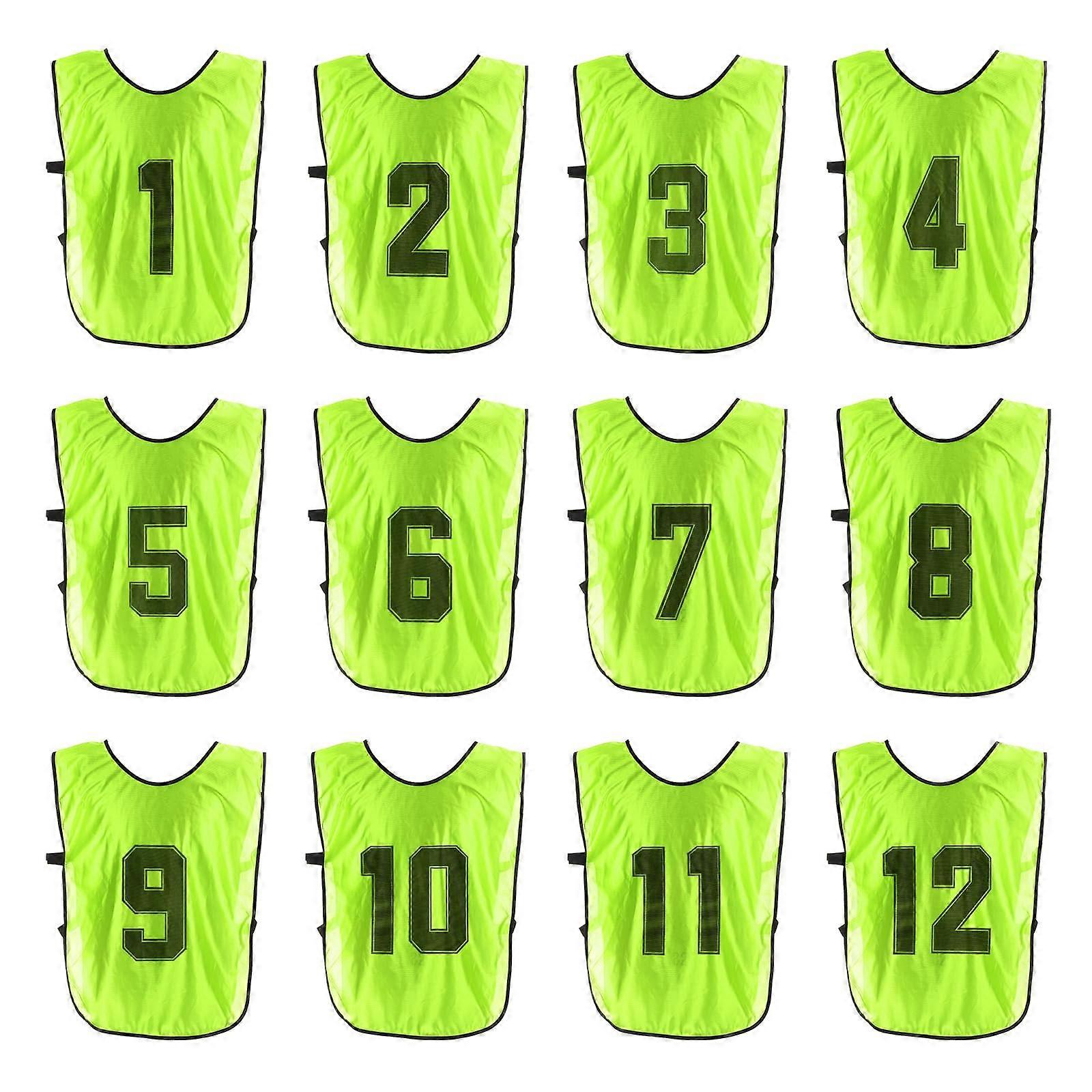 Football Training Vest, 12 Pack Reversible Pinnies, Numbered Jerseys with Belt for Adults, 25 Inch Green Color