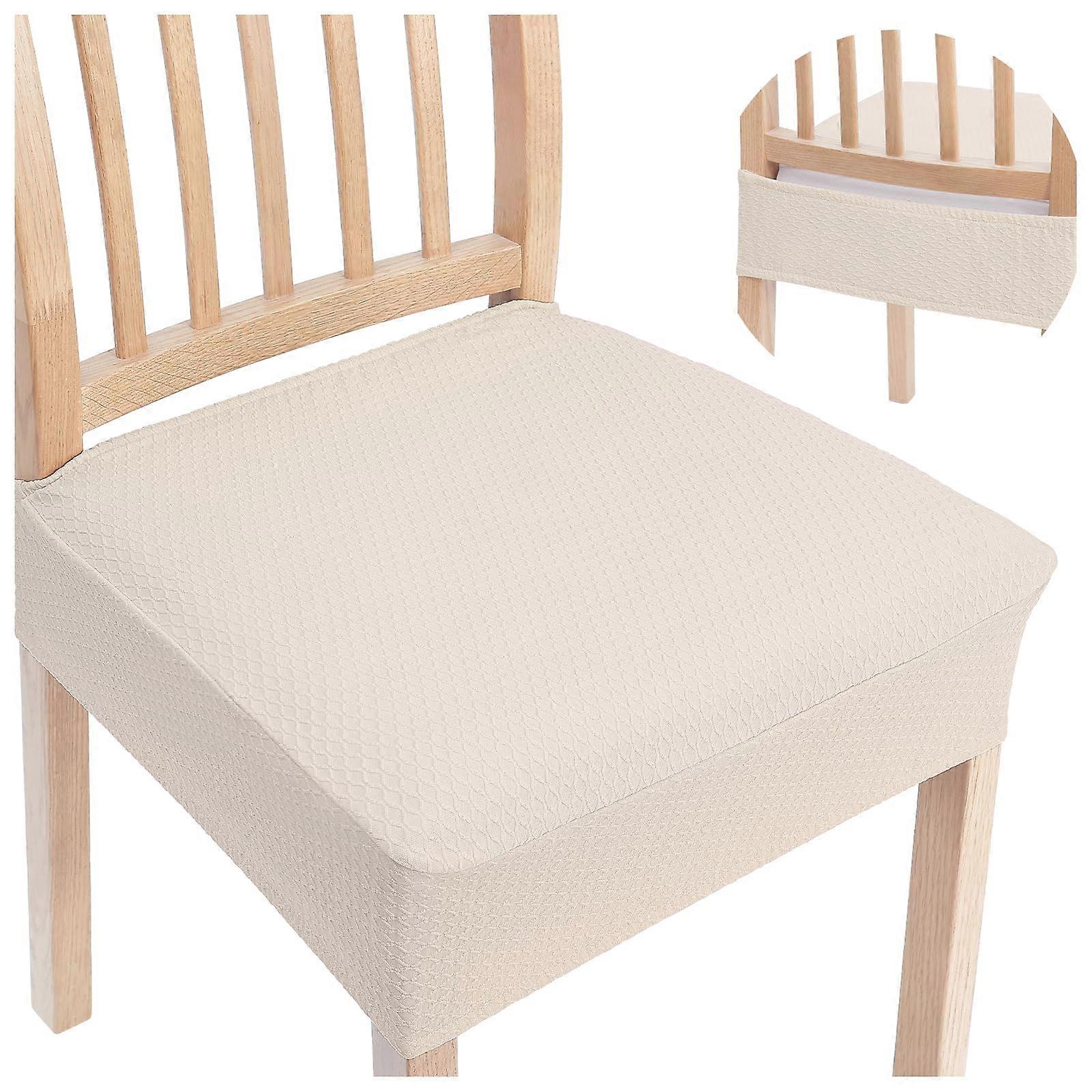 Stretch Jacquard Seat Covers for Dining Room Chairs Set of 6, Removable Washable Slipcovers in Beige for Easy Care