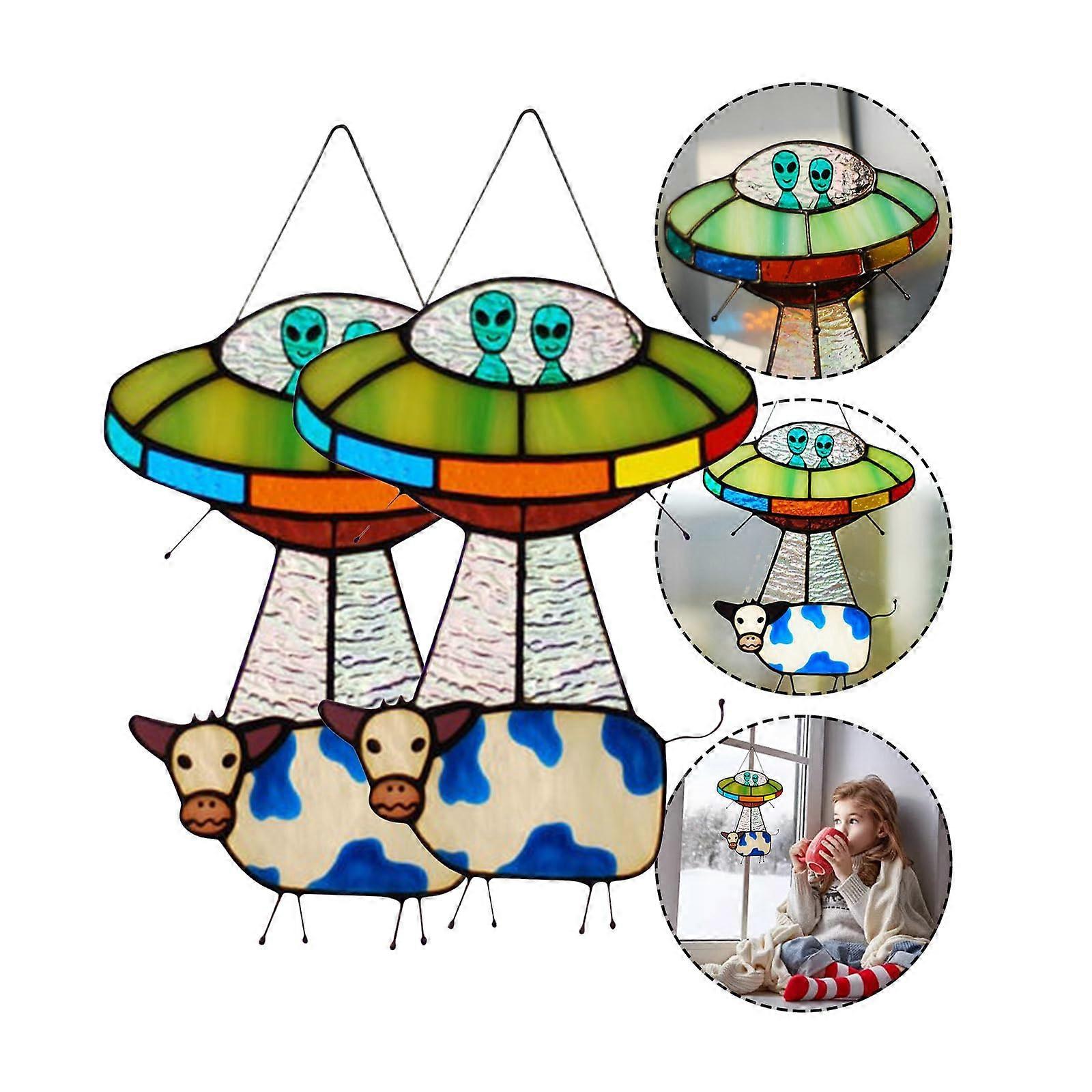 UFO Kidnapping Cattle Stained Glass Catcher Pendant, Colorful Phallus Design, 3D Art Decor, Unique Gift