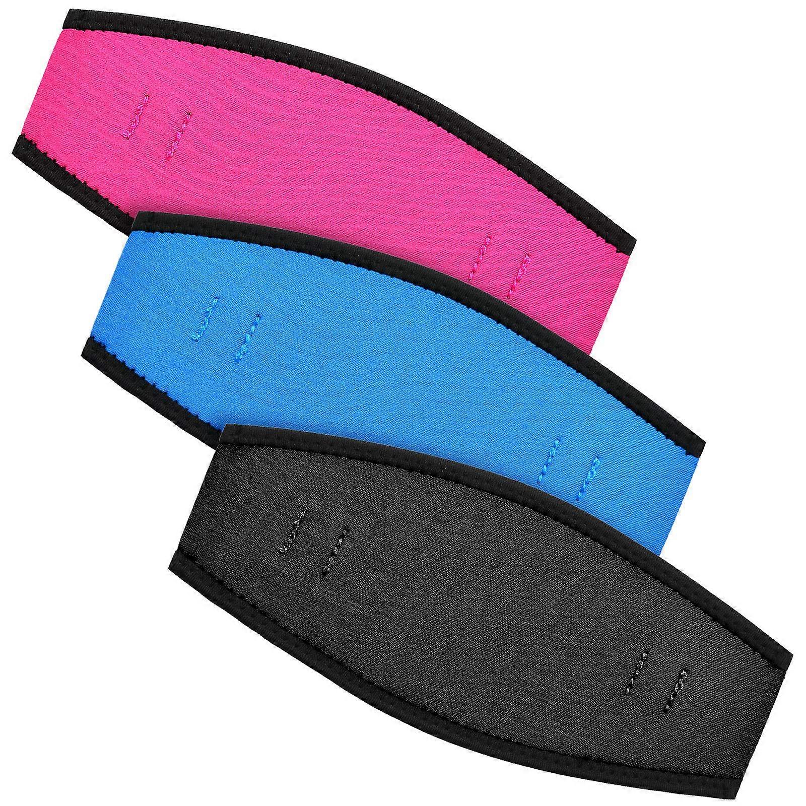 Neoprene Mask Belt Set for Scuba Diving, Snorkeling, and Water Sports - Hair Wrap in Rose Red, Black, Blue Colors