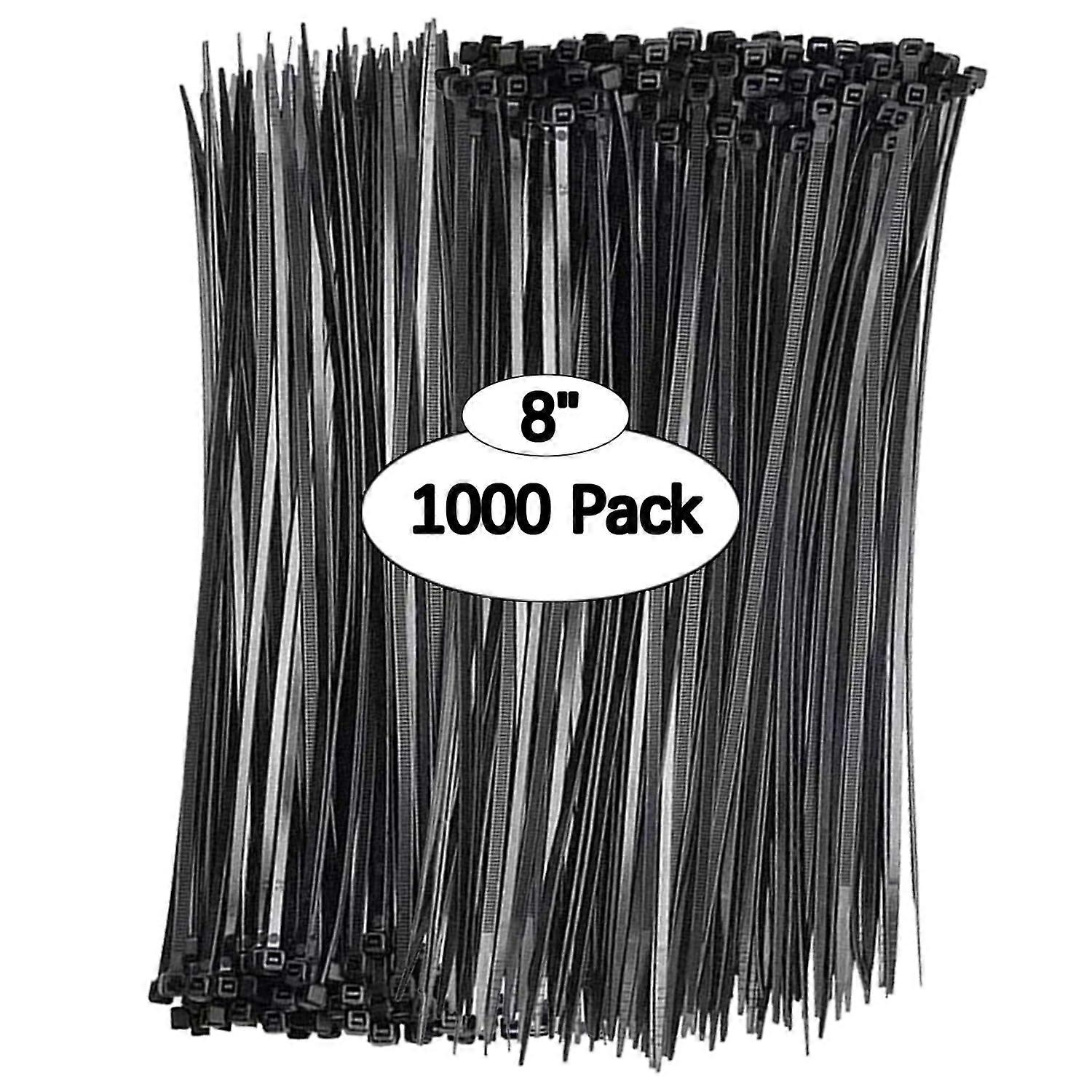 Black Zip Ties 8 Inch 1000 Pack 40 Lb Tensile Strength UV Resistant Heavy Duty Nylon Cable Ties