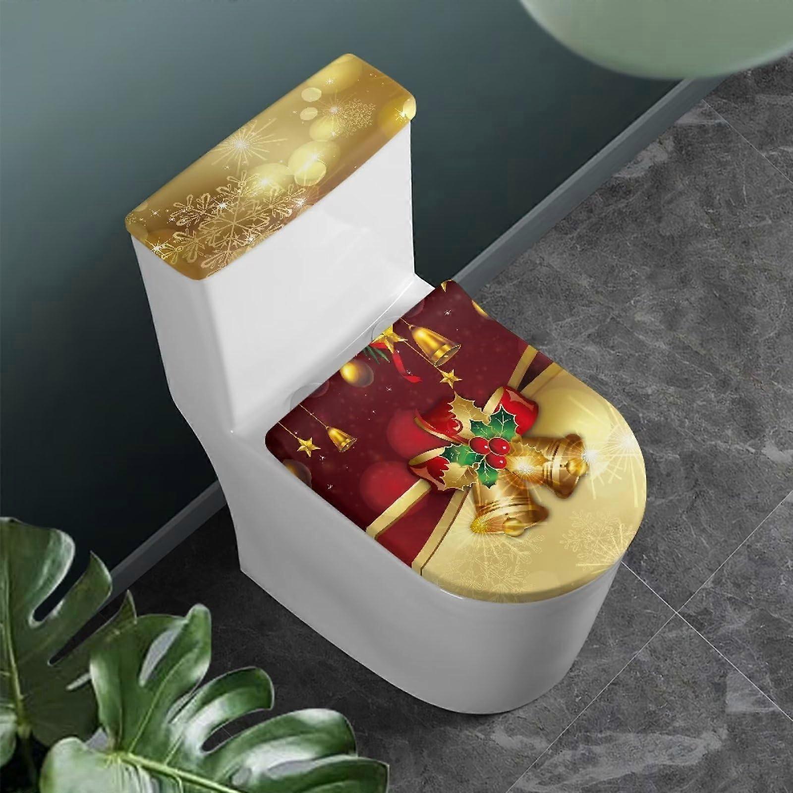 2 Piece Toilet Lid Covers and Tank Cover Set for Christmas Bathroom Decor, Fits Most Standard Toilet Tanks and Lids, Bells Design