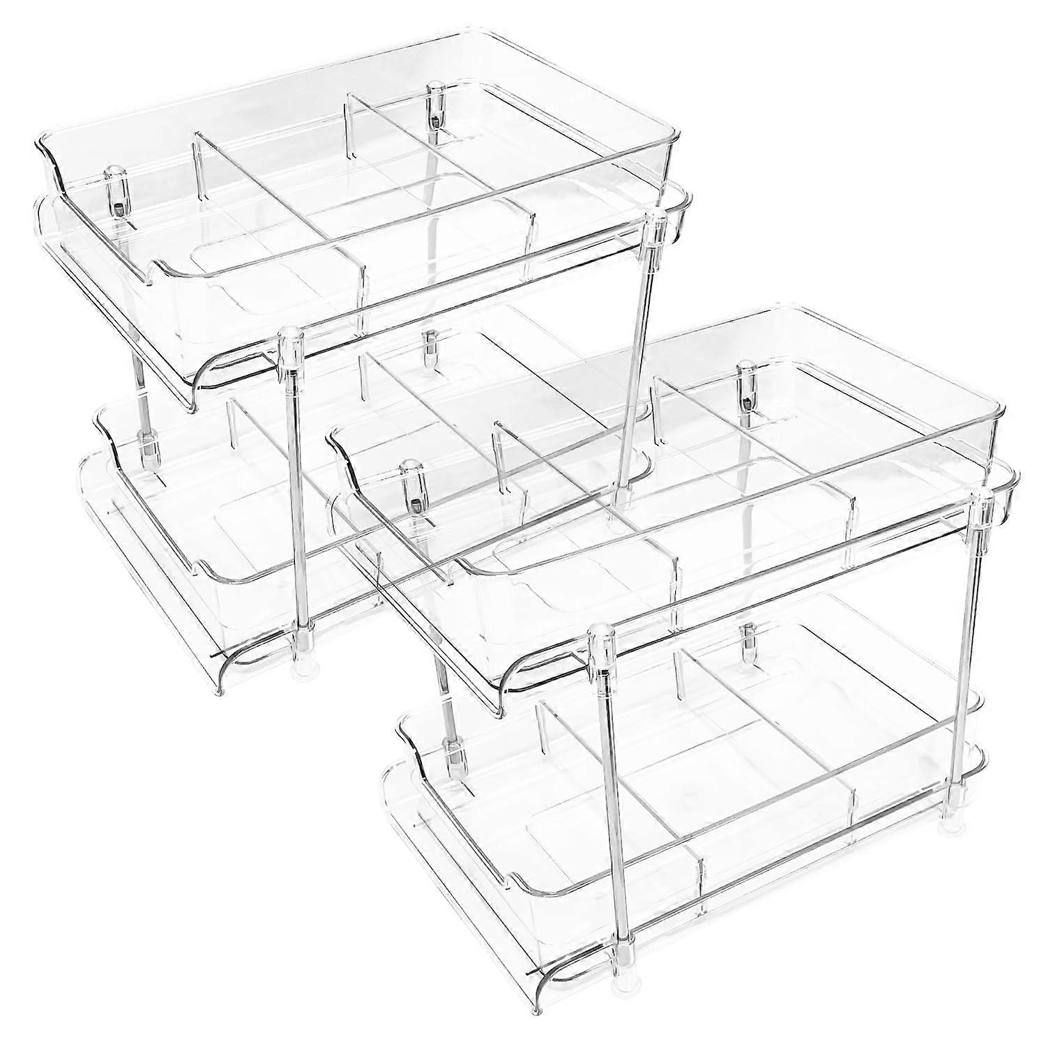 2 Pack Clear Bathroom Organizer Storage Bins, 2-Tier Plastic Shelves for Toiletries and Accessories, Stackable Design
