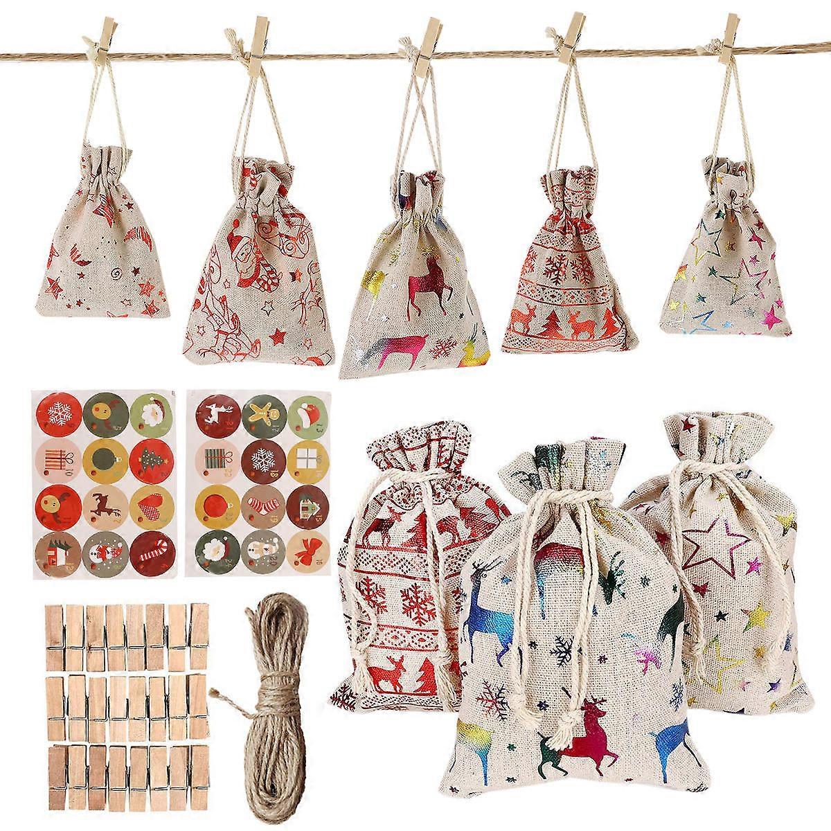 Christmas Printed Cloth Candy Bags for Candy Storage 24Pcs Set