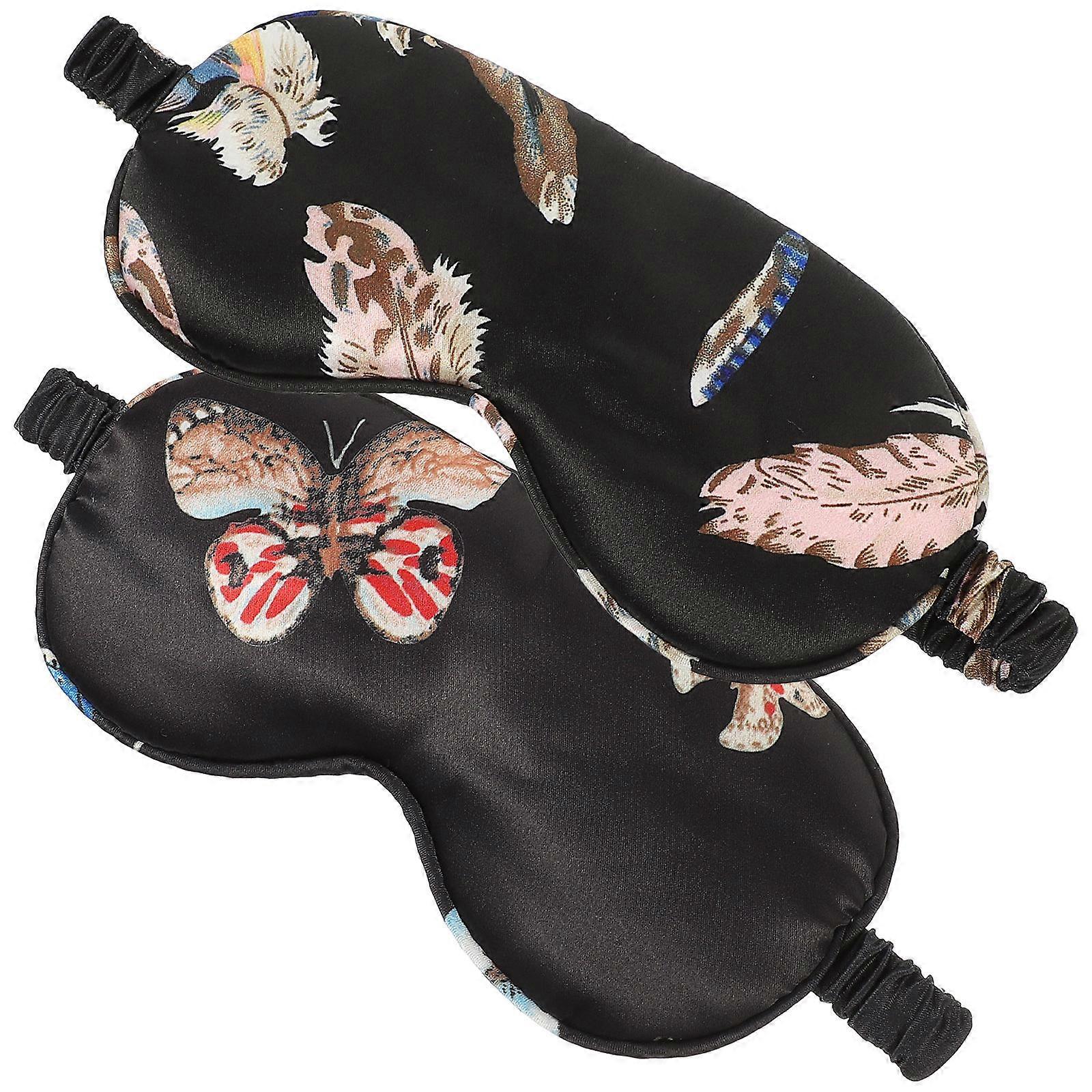 Printed Silk Eye Mask Sleep Eye Covers Elastic Satin Material Yellow Color 2Pcs
