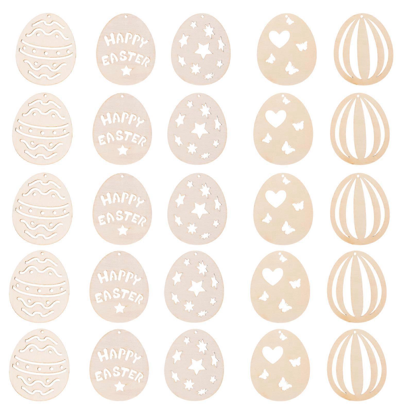 DIY Easter Celebration Hanging Decoration 50Pcs Wooden Chips Home Adornment Mixed Style 8X6.5Cm