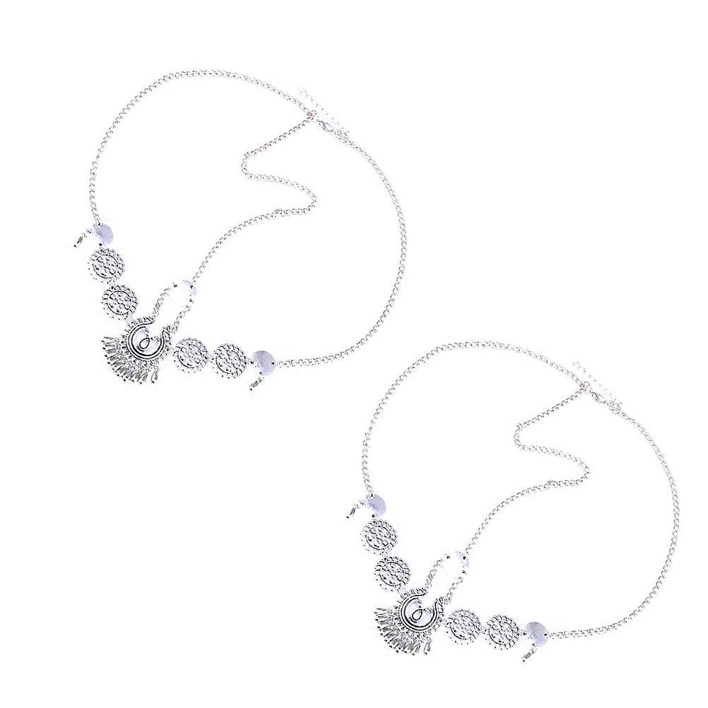 Ethnic Style Hair Band 2Pcs Silver Alloy Ethnic Charm for Women Wearing Retro Headwear