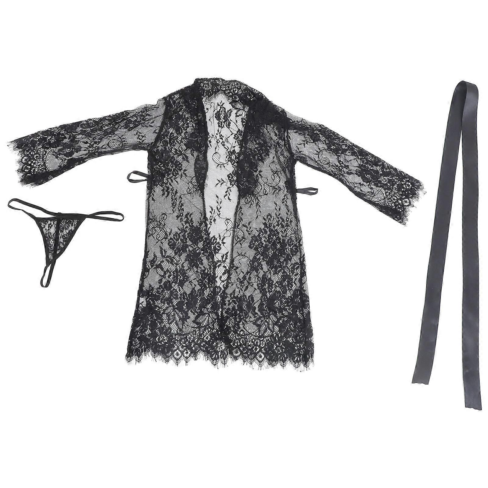 Lady Robes Transparent Lace Nightdress Hollow-Out Design 1Set