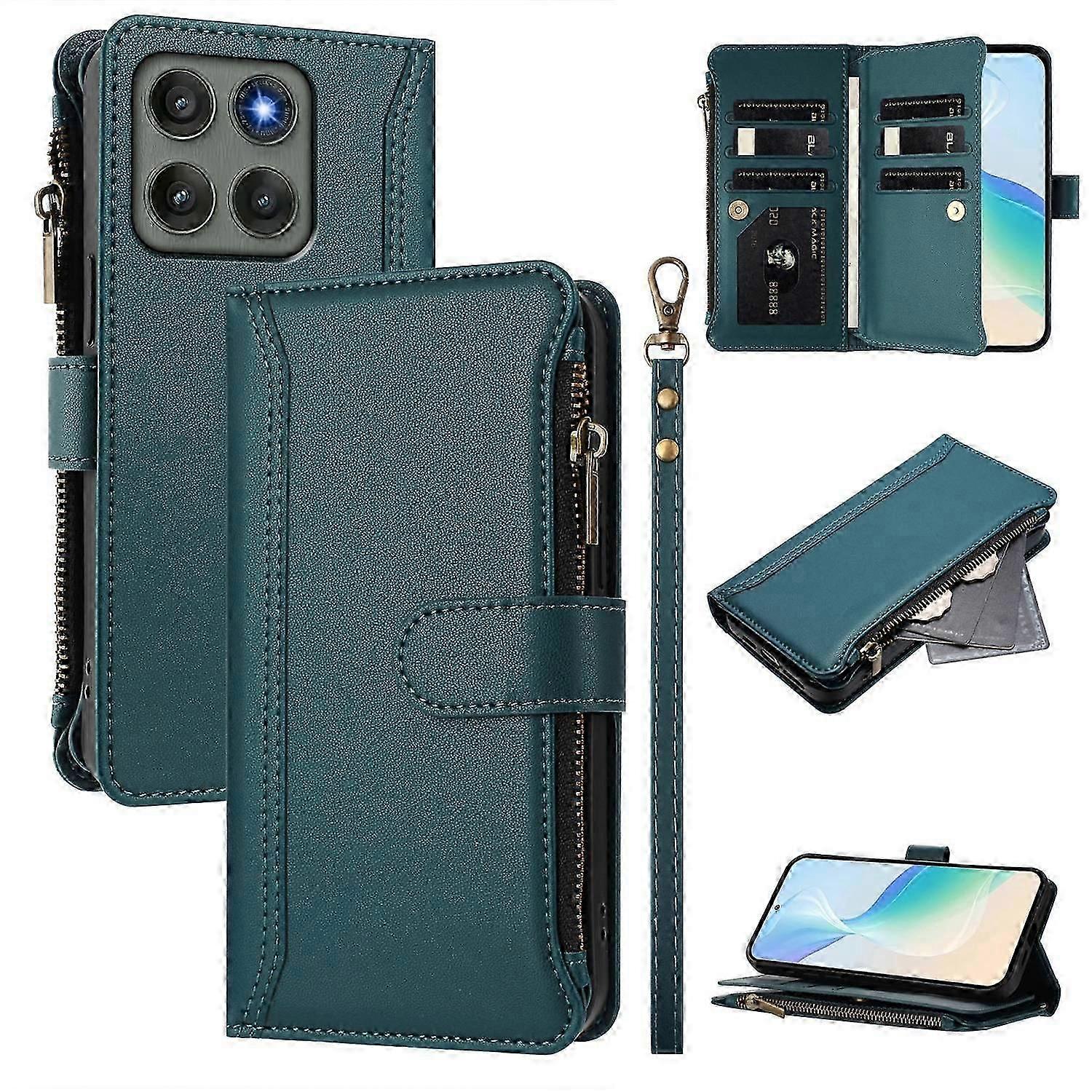 Suitable for 5G Phone Case with 9 Card Slots Zipper Wallet Stand Cover and Wrist Strap-si xi,Dark Green,Multicolor