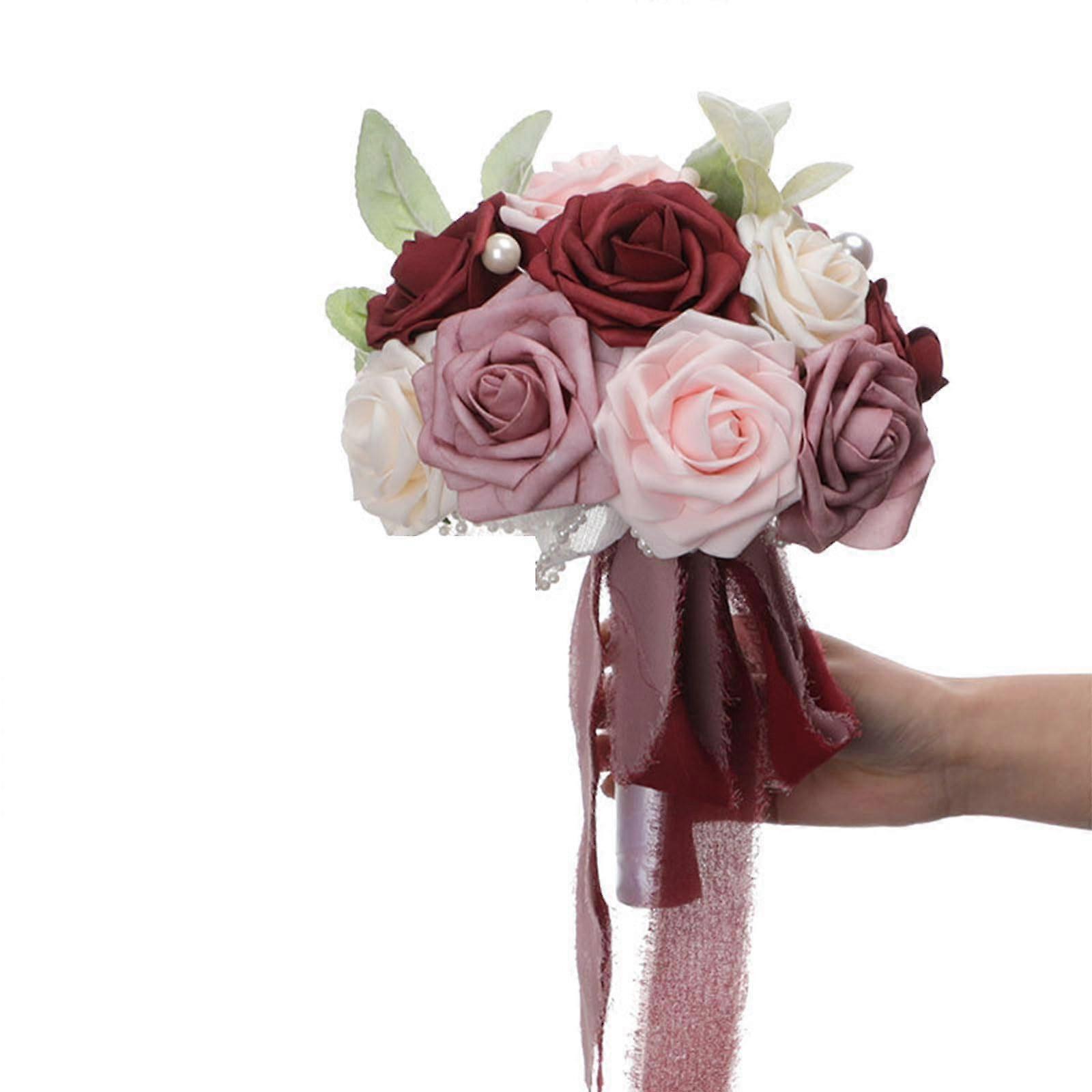 Artificial Wedding Bouquet - Silk Lifelike Blooms, Reusable Bridal Decor For Ceremony, Ivory And White