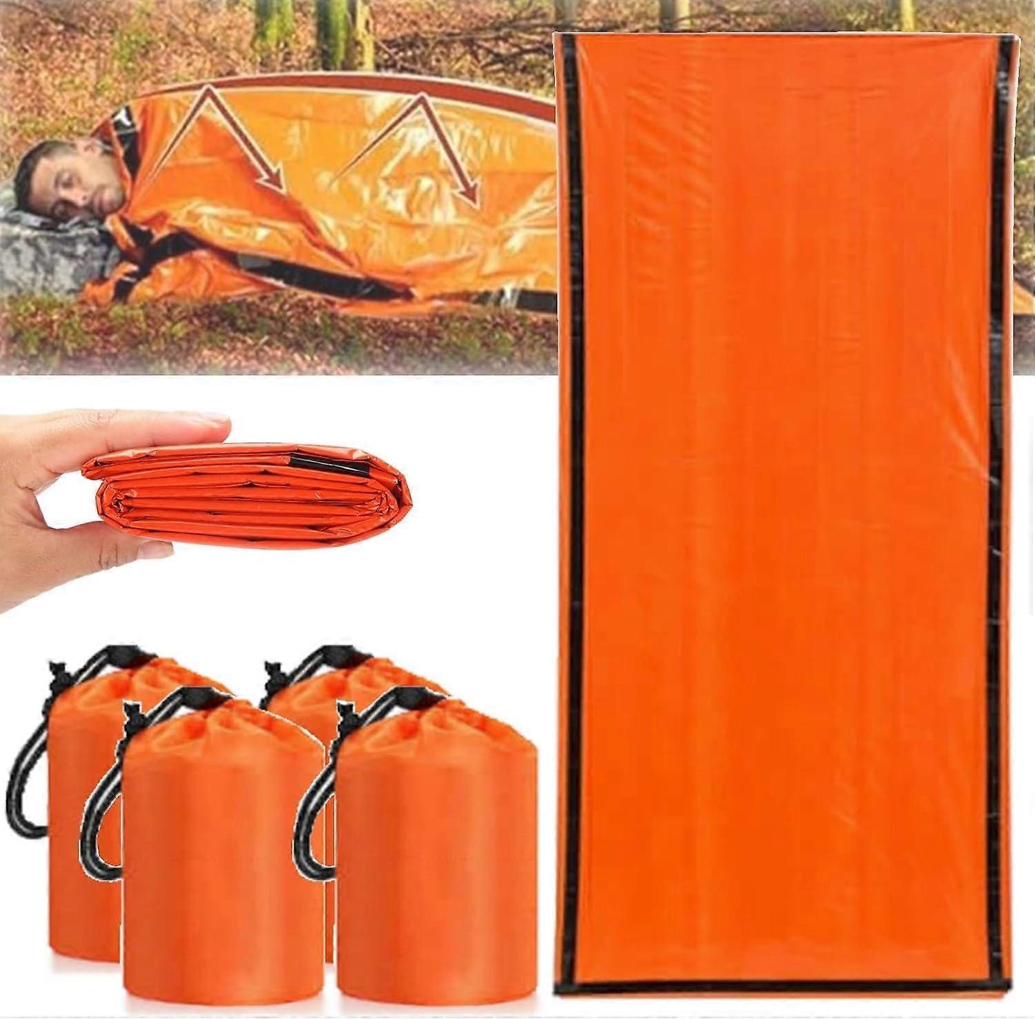 Outdoor Emergency Sleeping Bag Pack of 4 - Waterproof, Warm, Multifunctional for Camping and Hiking with Whistle