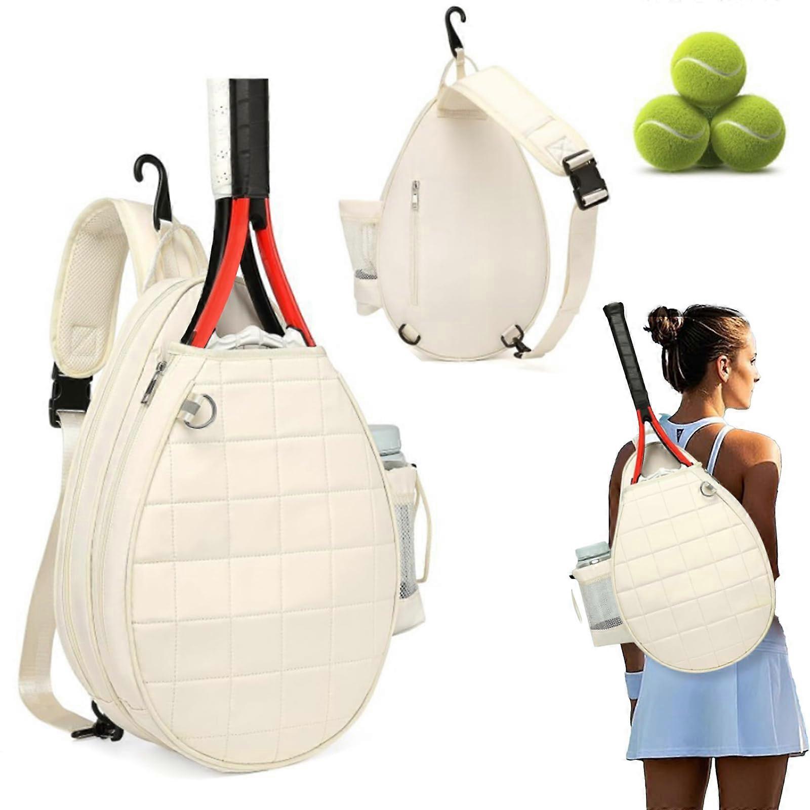Tennis Bag - Portable Waterproof Tennis Backpack for Men and Women, Lightweight Racket Shoulder Bag, Beige, 45x29x12 cm