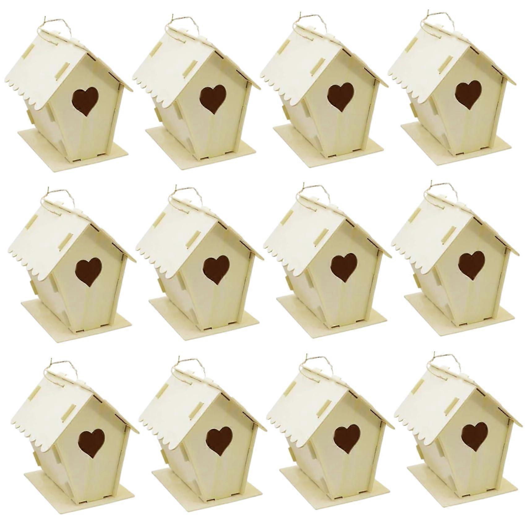 Heart & Fence Bird House Unfinished Wood Hanging Nesting Box for Small Birds 4 x 4.3 x 5.5 cm Ideal for Kids and Adults