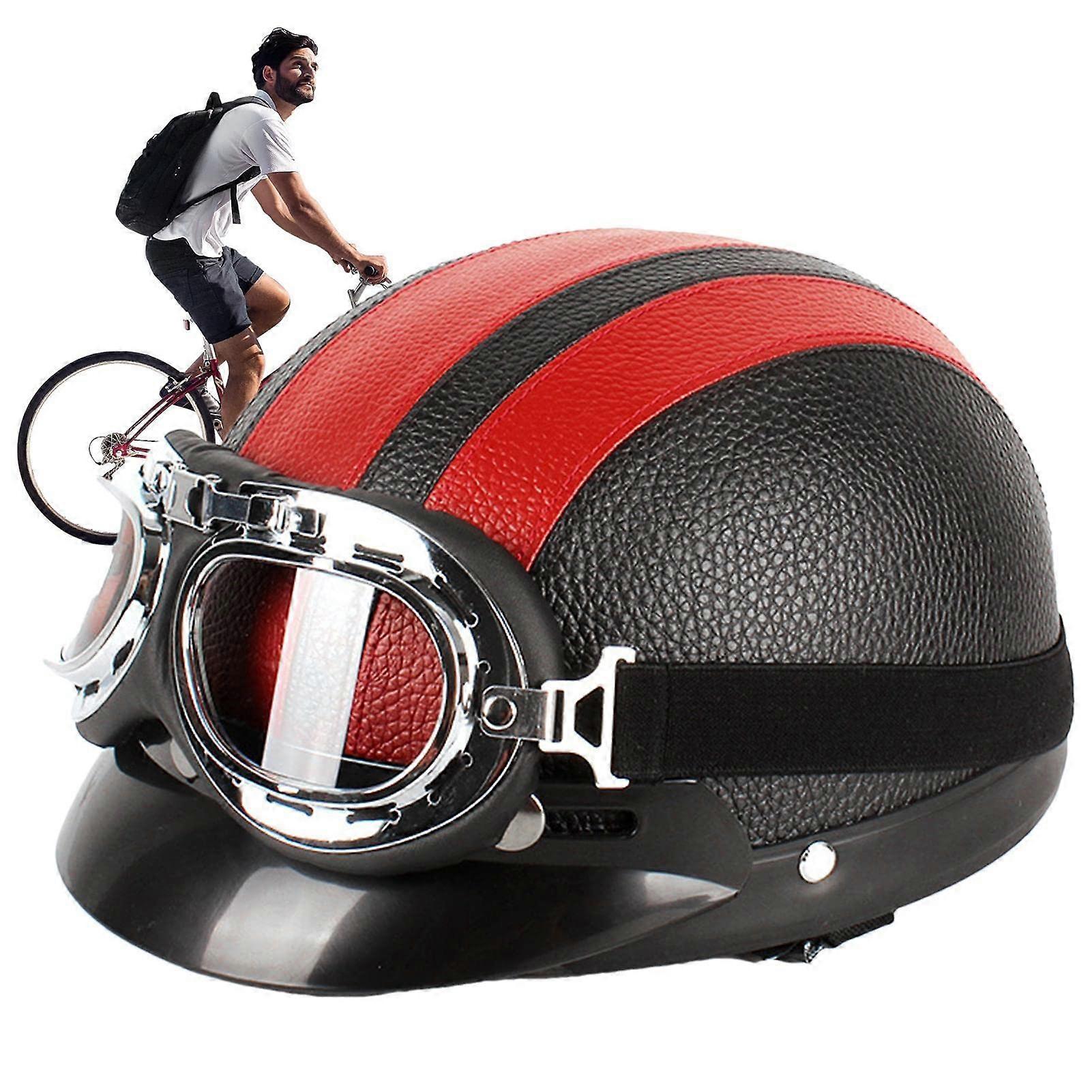 Cycling Hat - Adjustable Size Breathable Vintage Motorcycle Riding Helmet for Racing and Sports, Red
