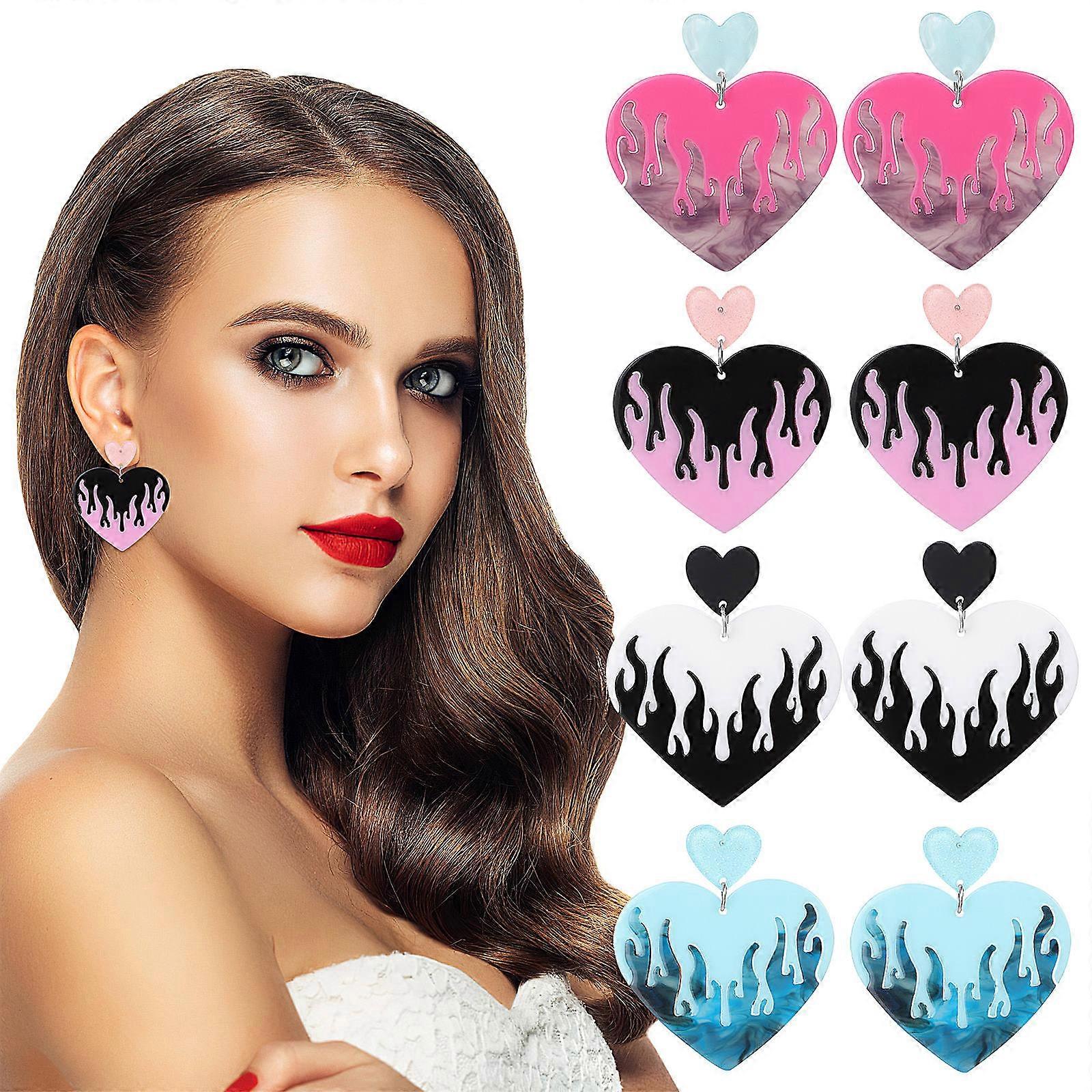 Fashion Heart Stitching Earrings For Ladies And Girls Perfect For Weddings Featuring Unique Patchwork Design 4 Pairs