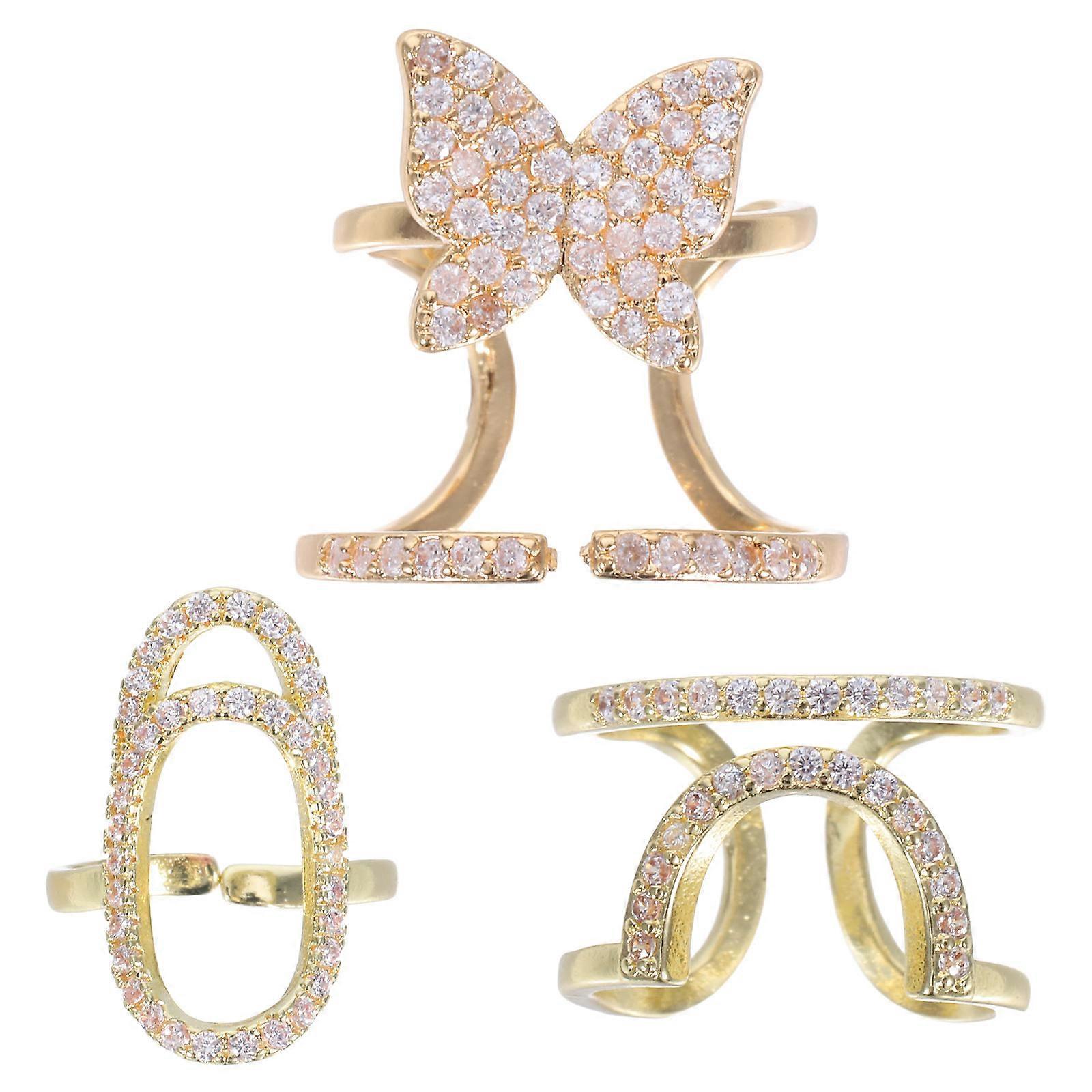 Golden Zircon Nail Rings 3Pcs for Women Comfortable Removable Fingernail Jewelry
