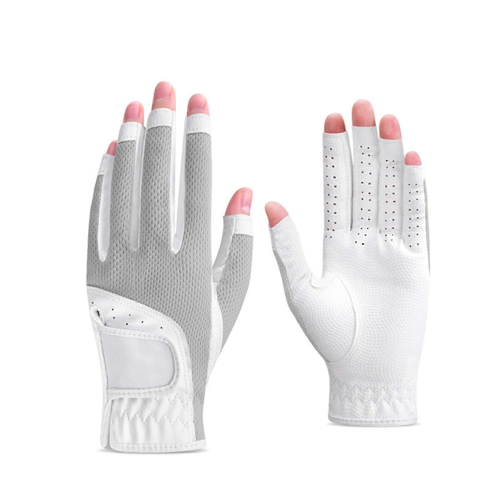 Golf Gloves For Women - Pro Mesh Breathable, Sweat-Wicking, White Gray Model 19