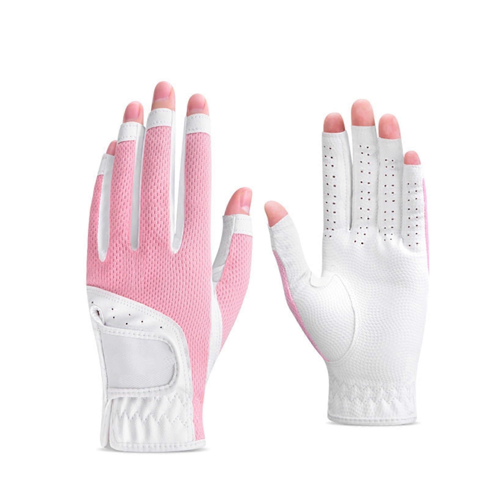 Golf Gloves For Women, Breathable Mesh, Sweat-Wicking, Professional Quality, White Pink, Size 20
