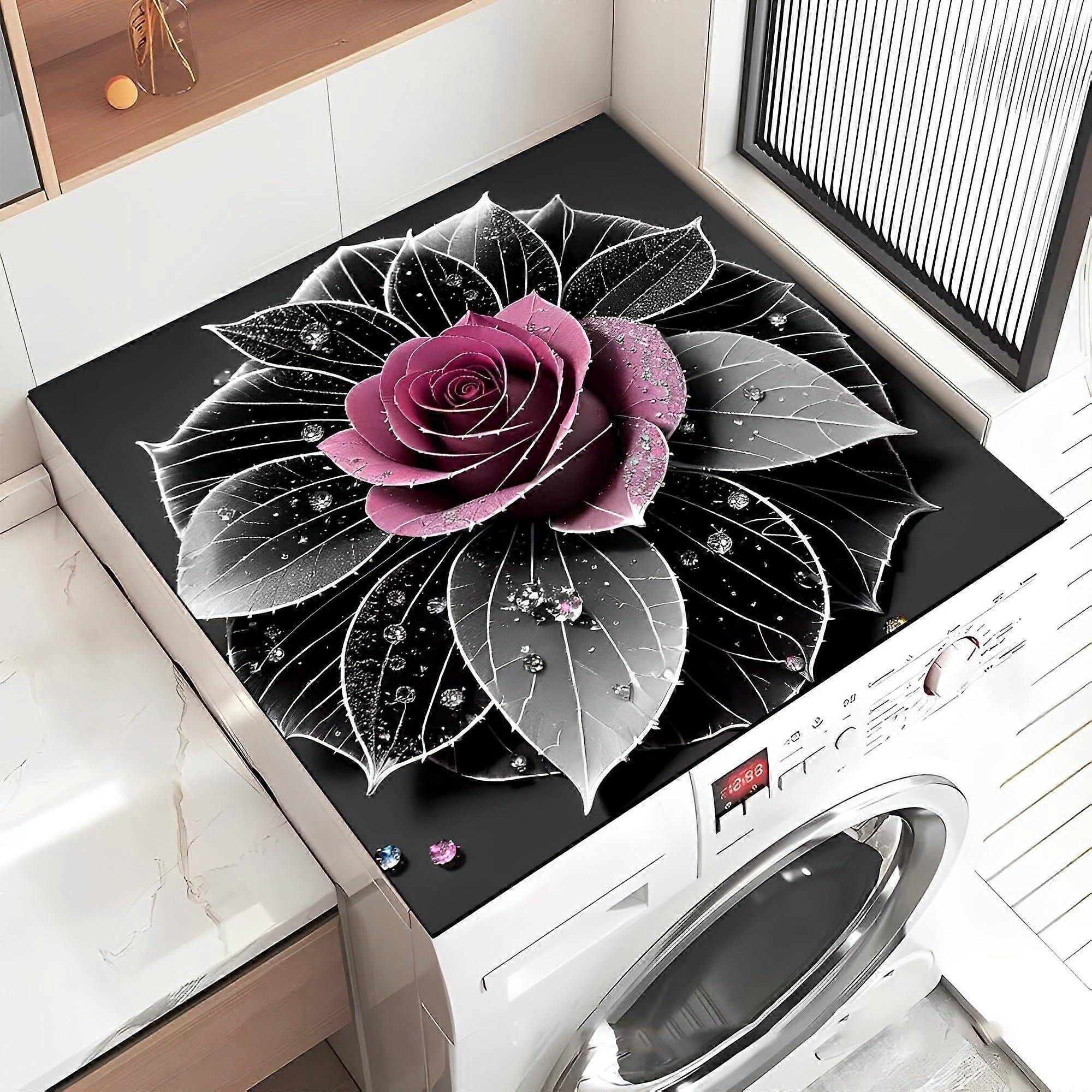 Washing Machine Cushion Pad, Non-Slip Absorbent Cover, 60x60cm Purple Roses, Dust Protection for Washer and Dryer