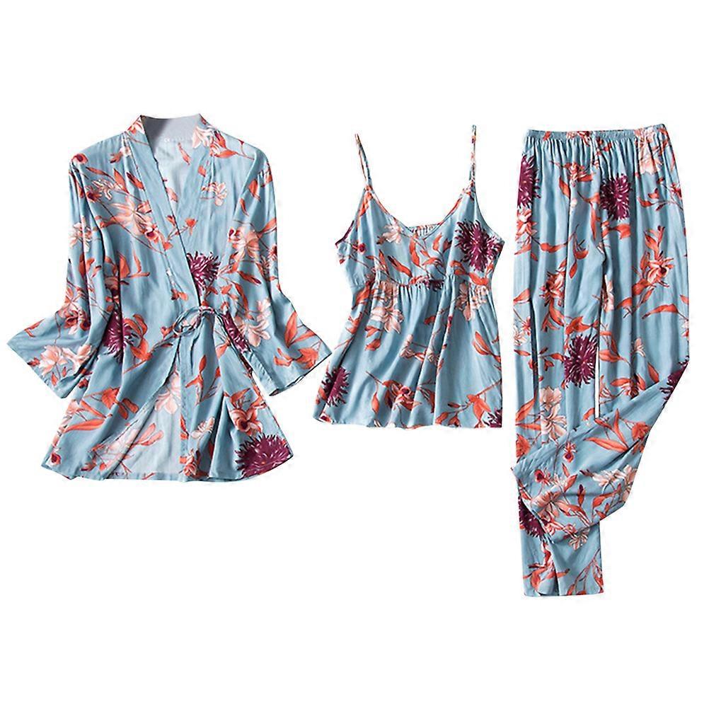 Woman Pajama Set Stylish Household Nightwear Blue XXL Cotton Material 1Set