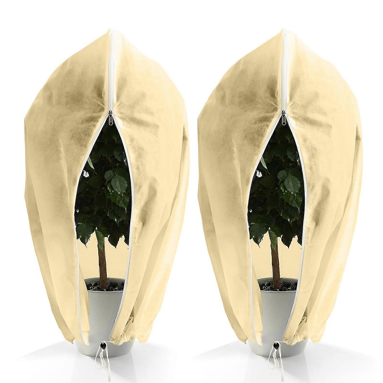 Winter Plant Protection Pack Of 2, 80x120 Cm, 80 G/M2 Plant Covers With Zip And Drawstring For Pot Plants