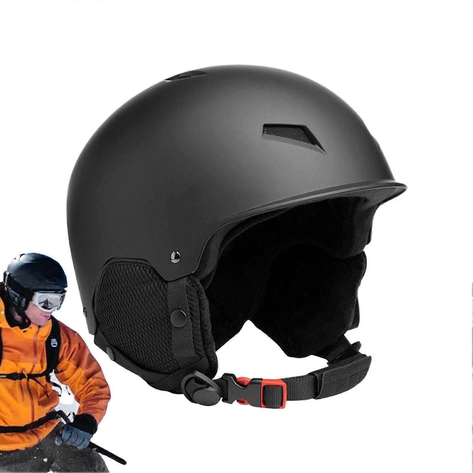 Ski Helmets Unisex - Shock Absorbing Snow Sports Gear, Goggles Strap Clip, Lightweight Ventilated Shell, Black